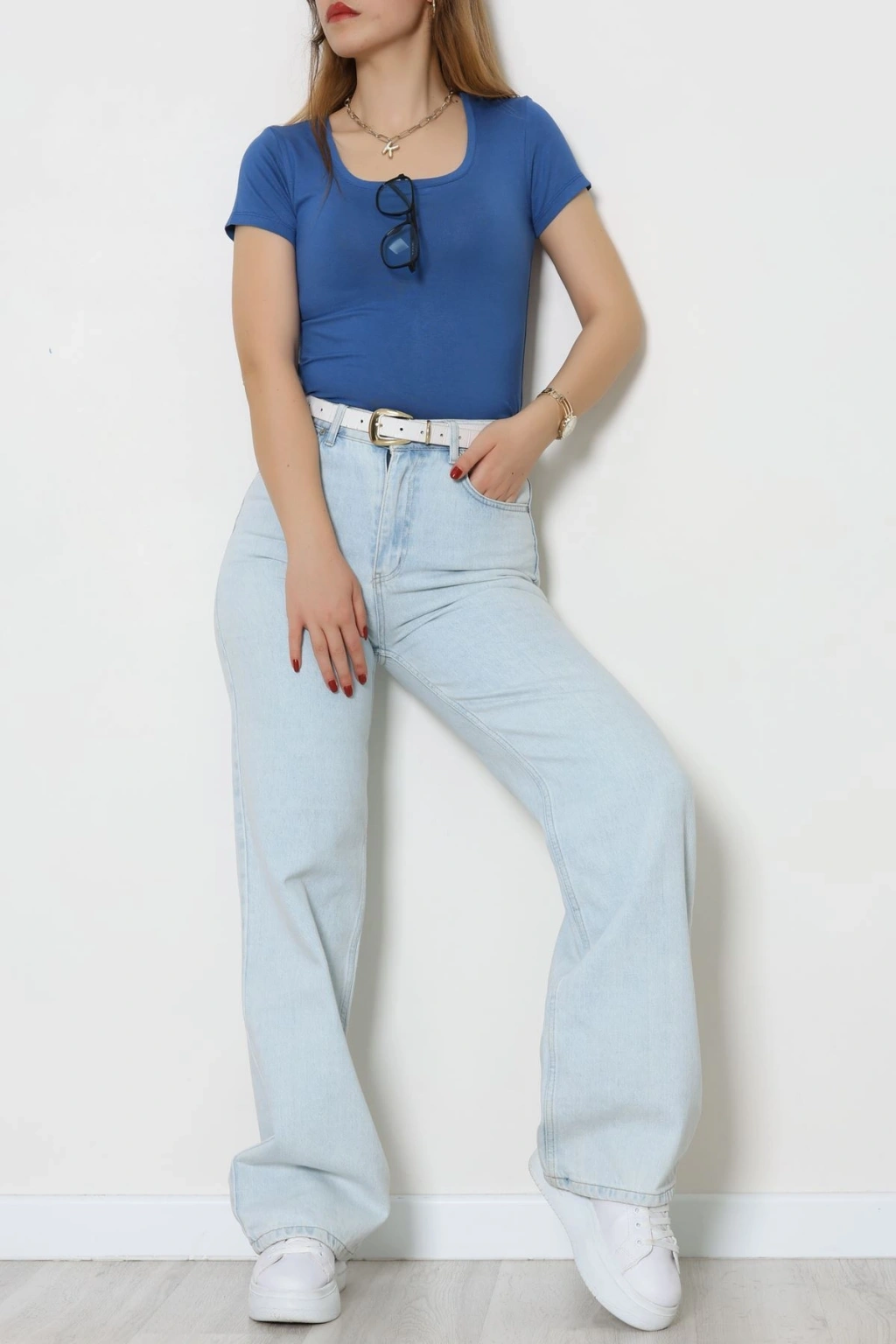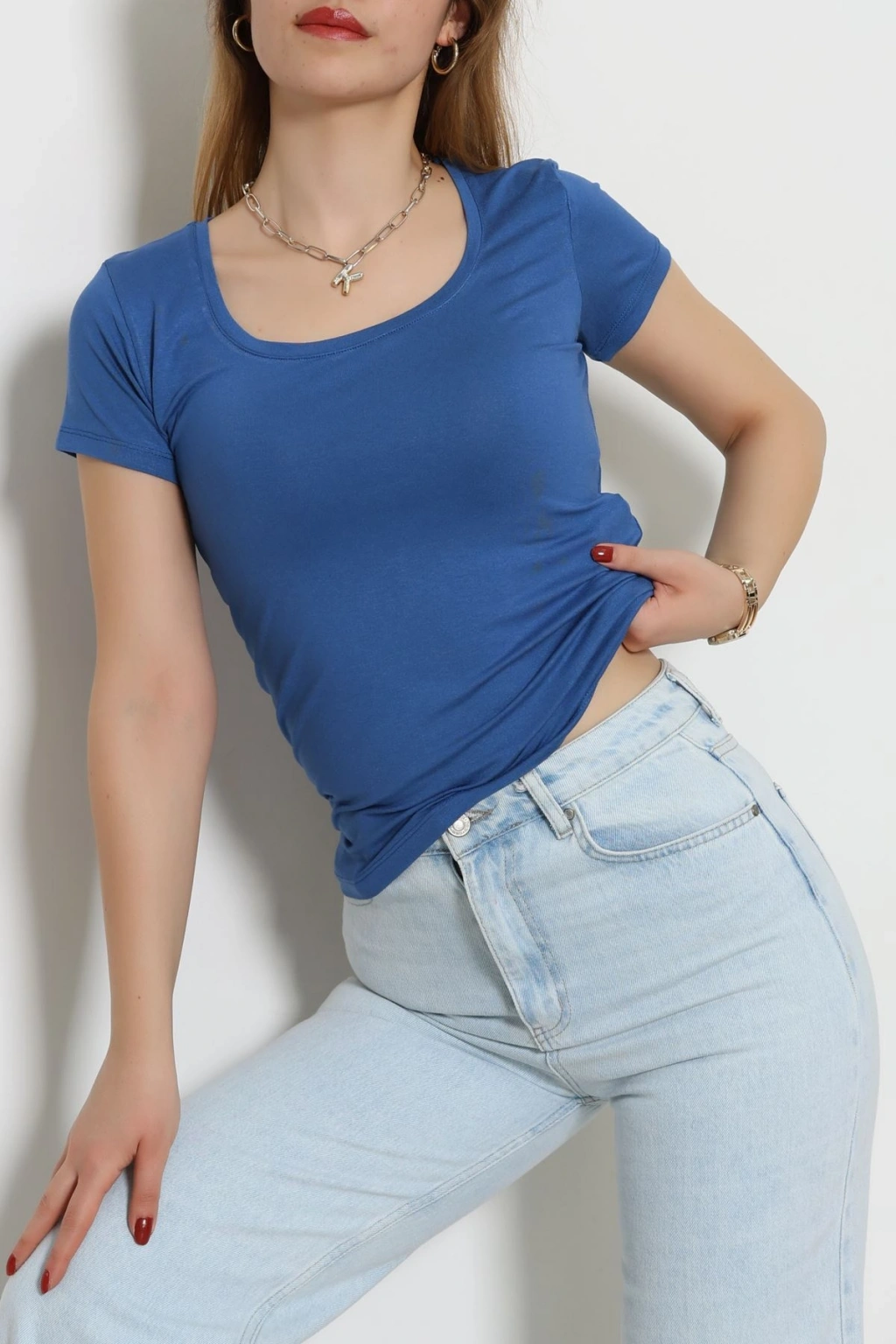 Viskon Yuvarlak Yaka Kısa Kol Body Mavi - 70883.2127.