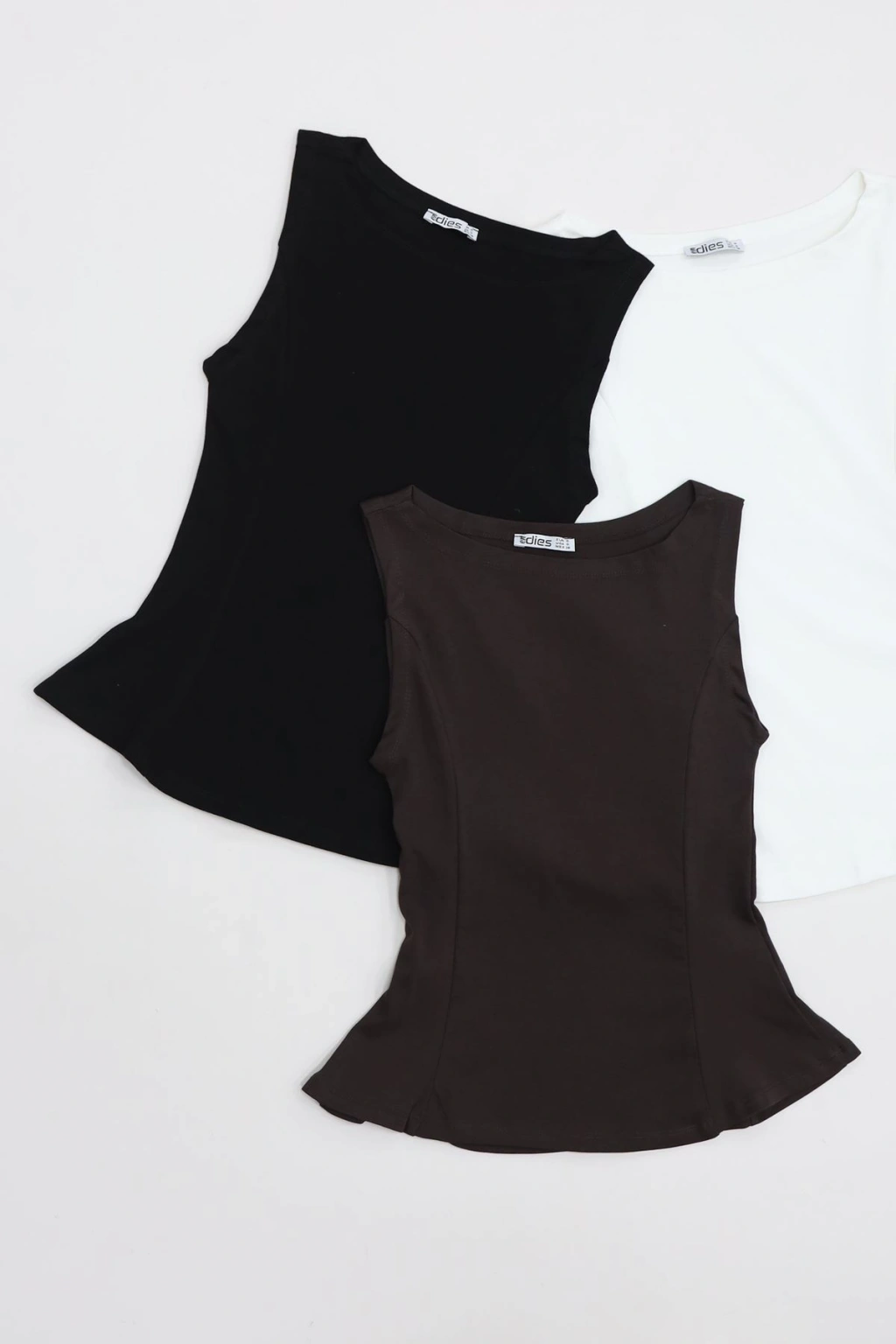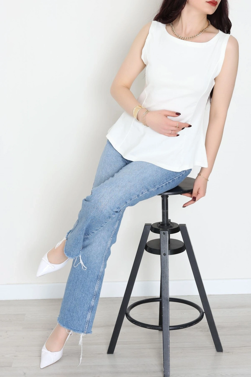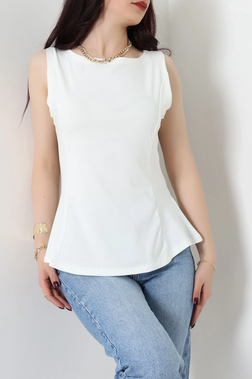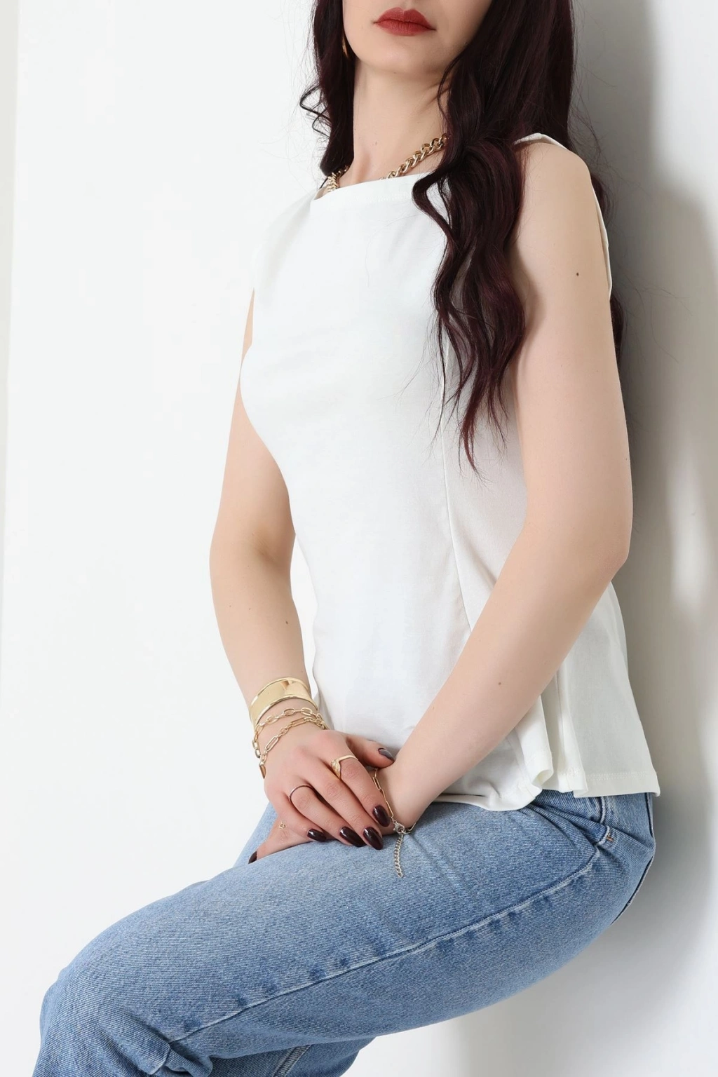Volanlı Sıfır Kollu Ribana Bluz Ekru - 22070.200.