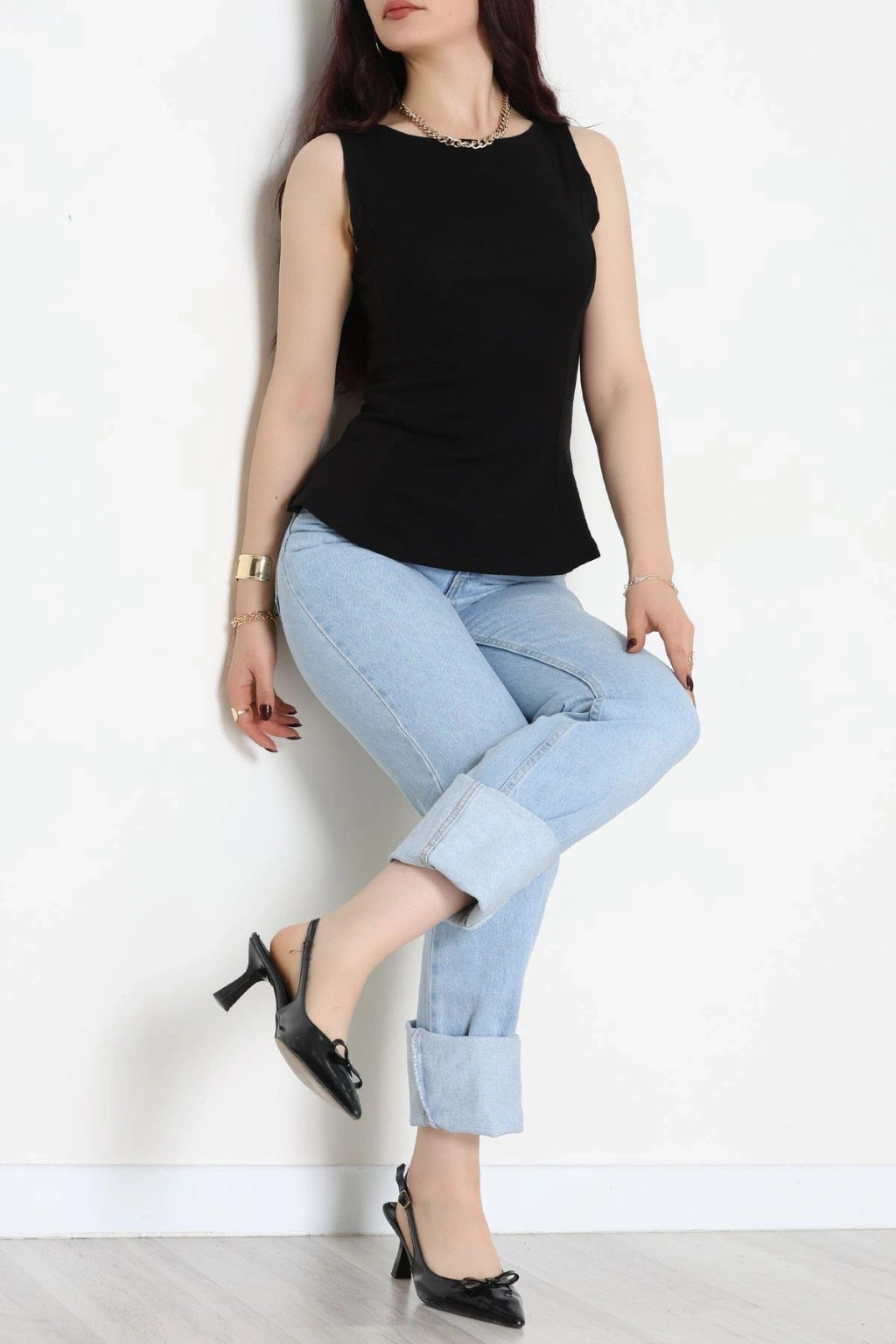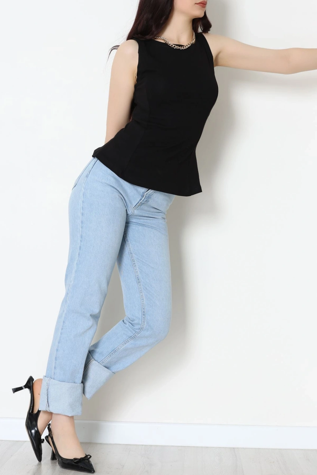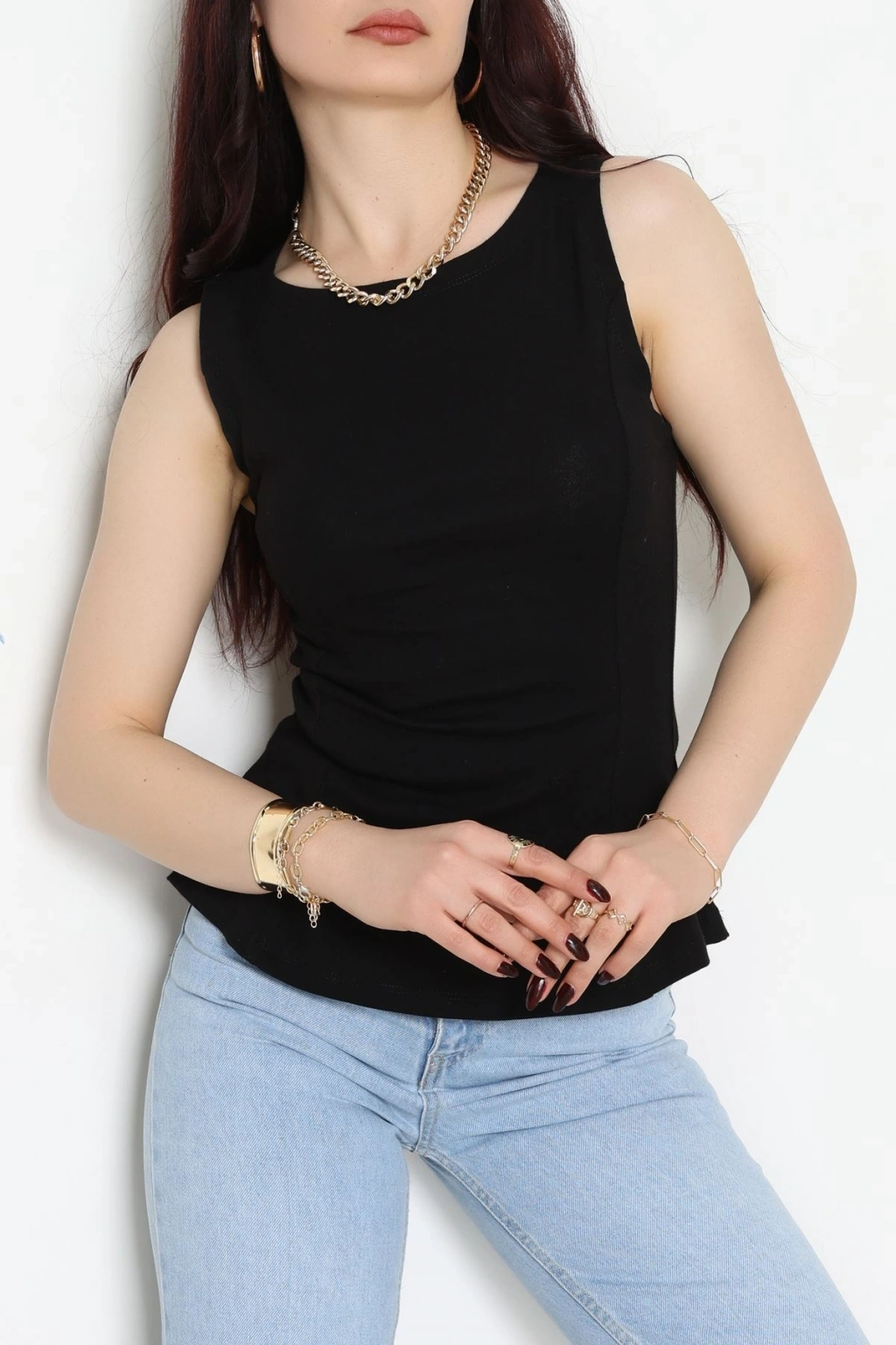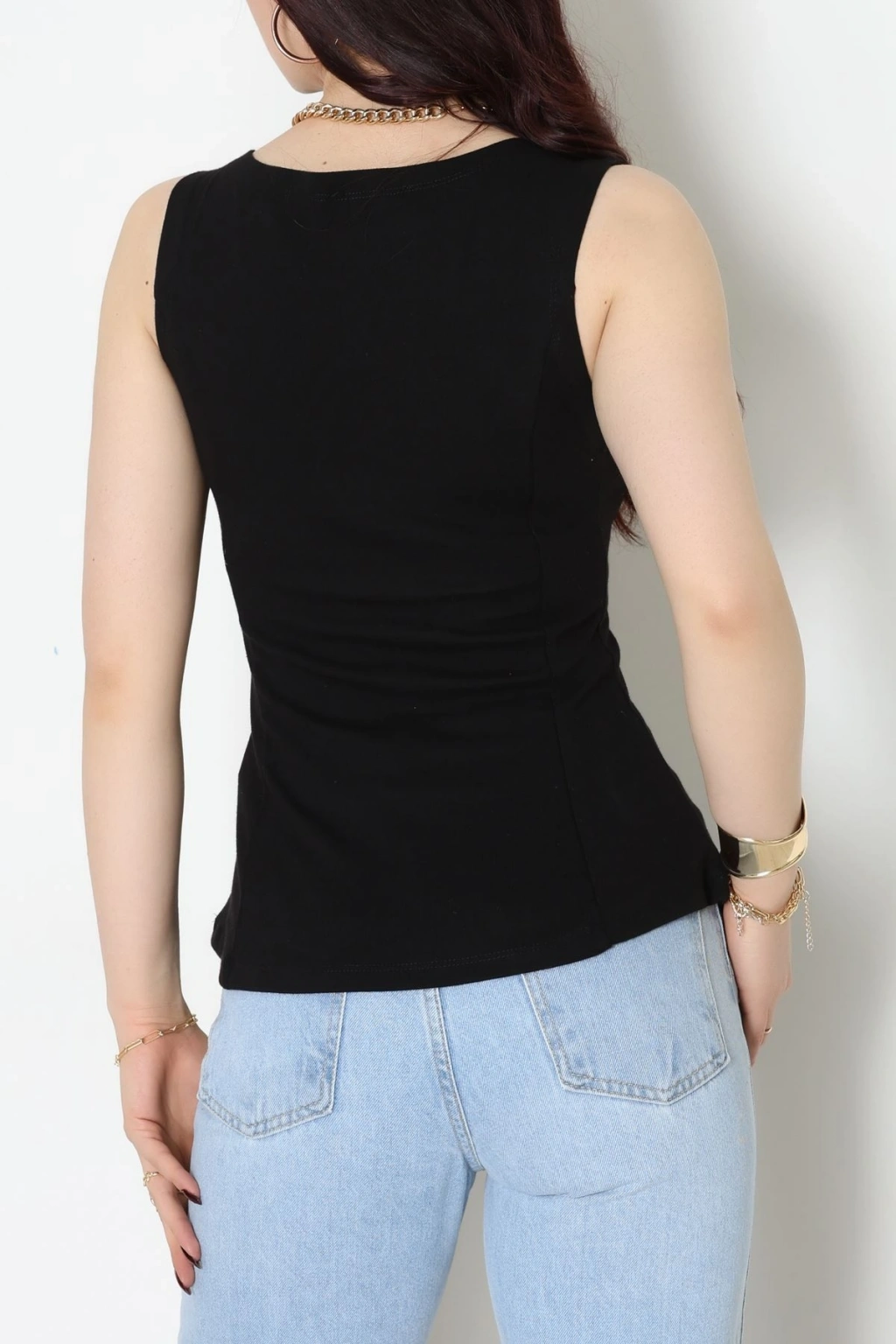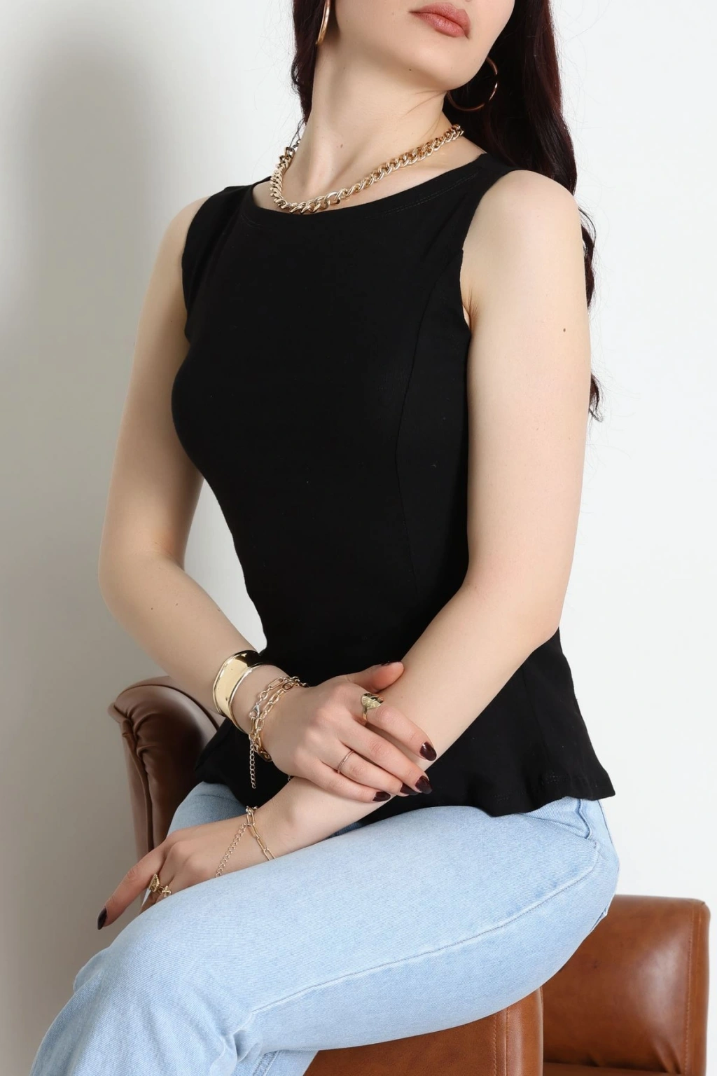 Volanlı Sıfır Kollu Ribana Bluz Siyah - 22070.200.