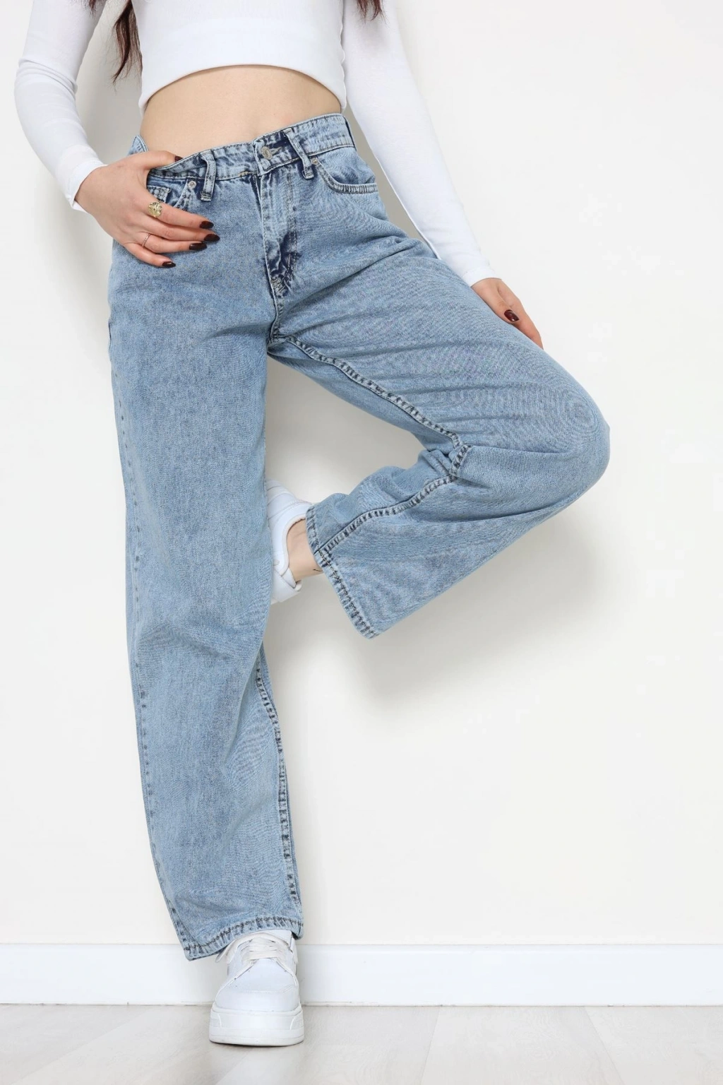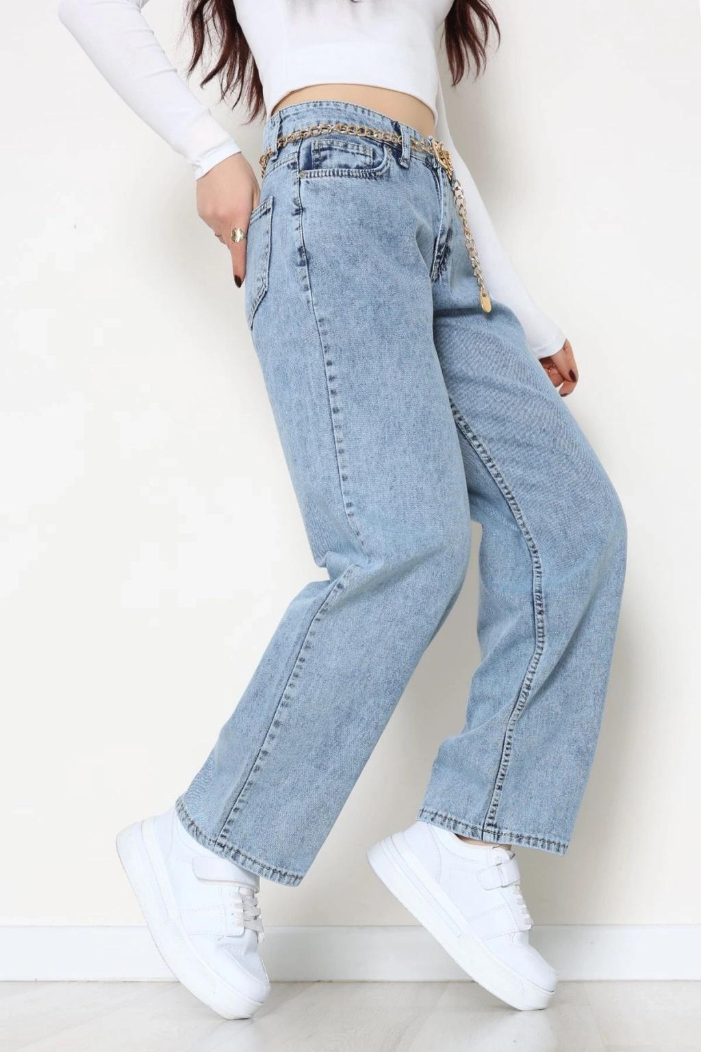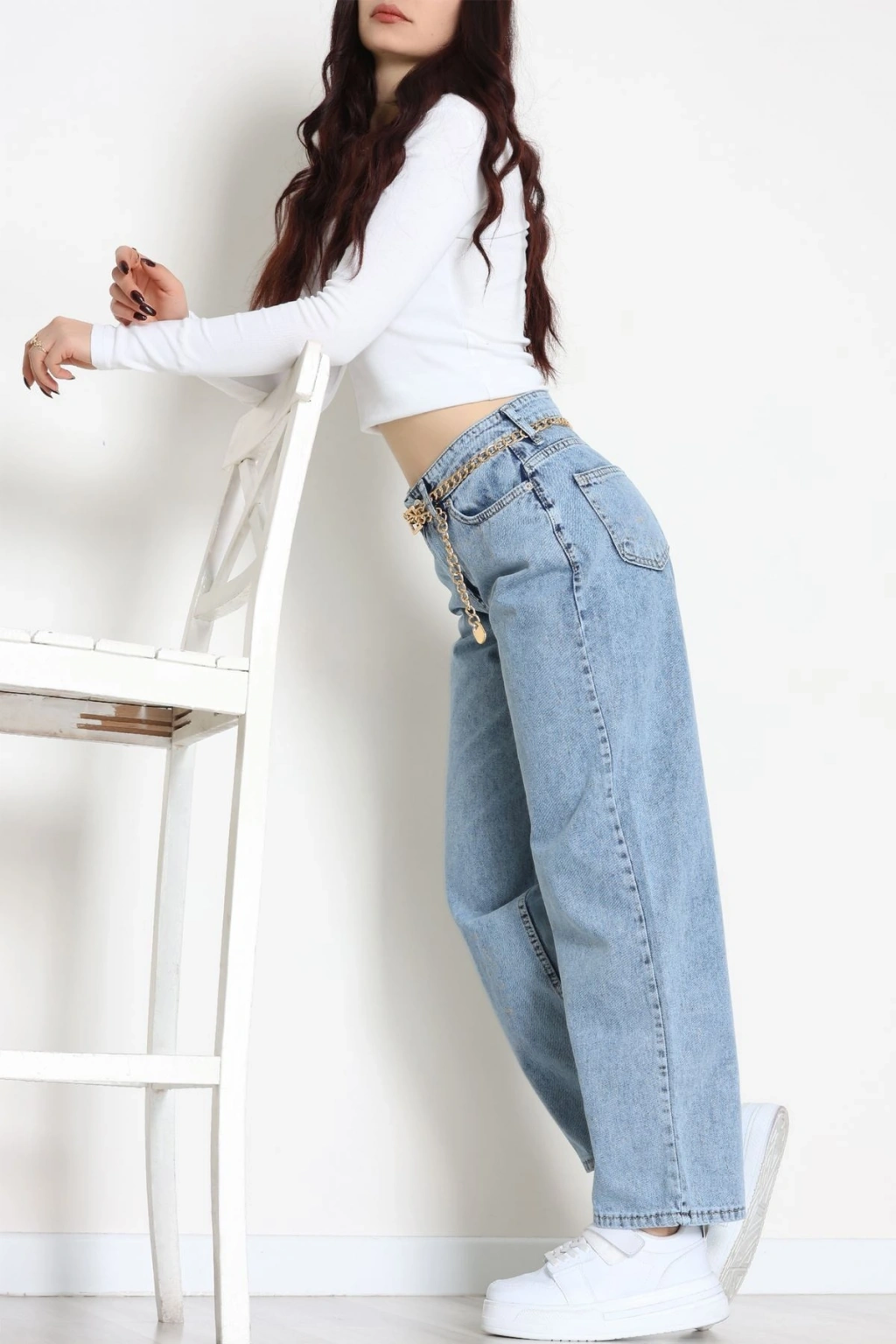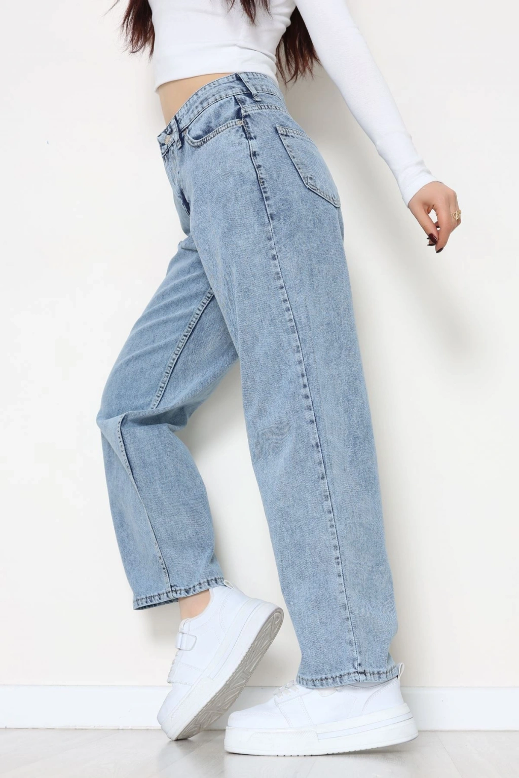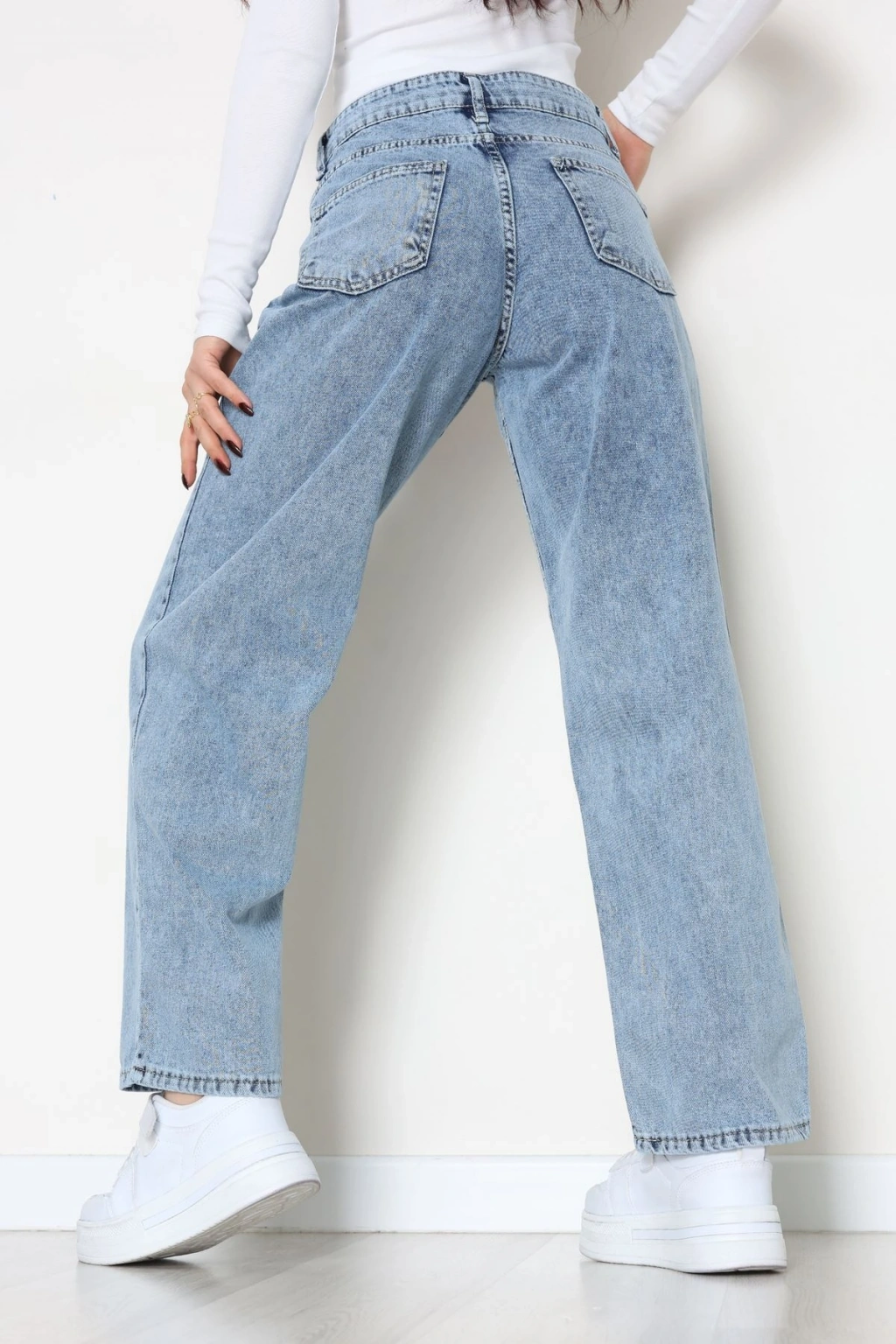 Arkası Tokalı Baggy Kot Pantolon Buzmavi - 31895.1606.