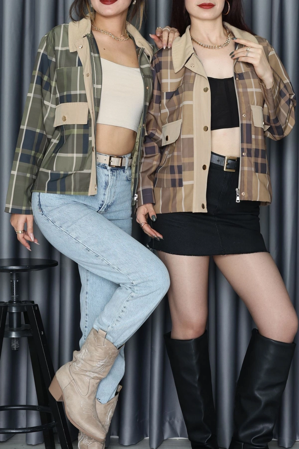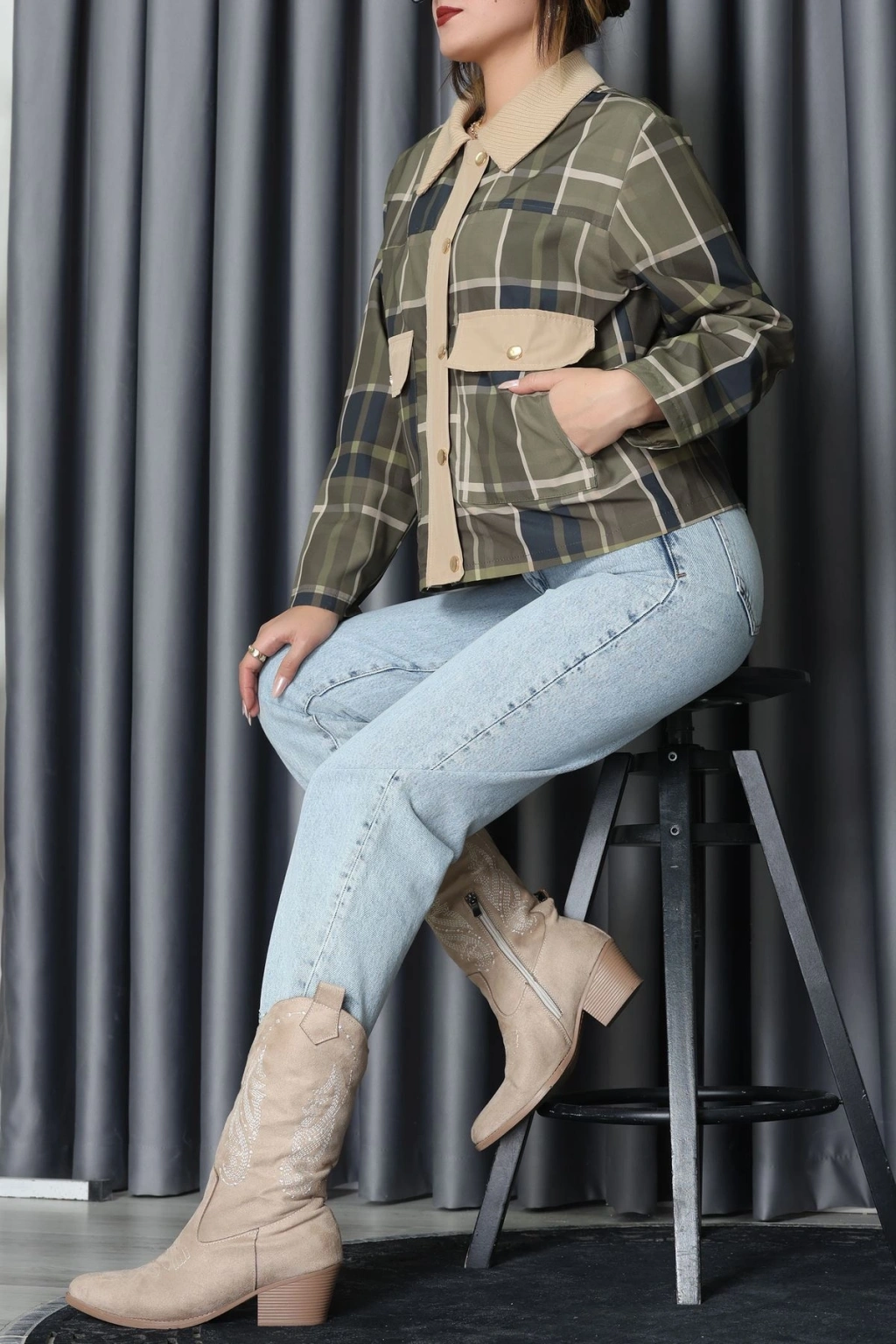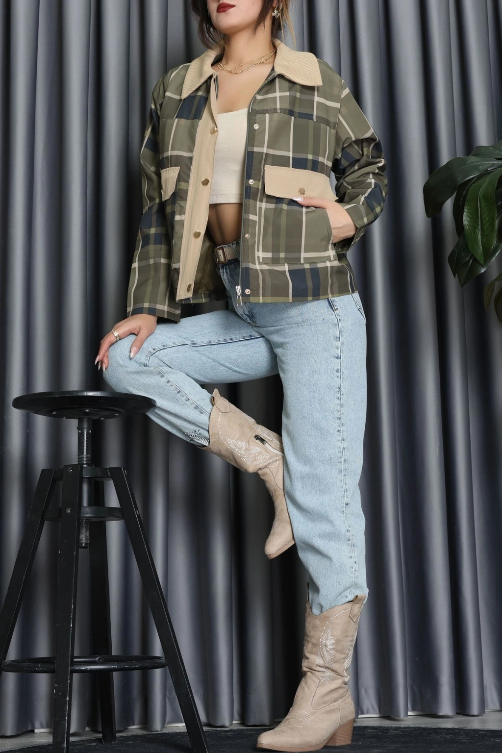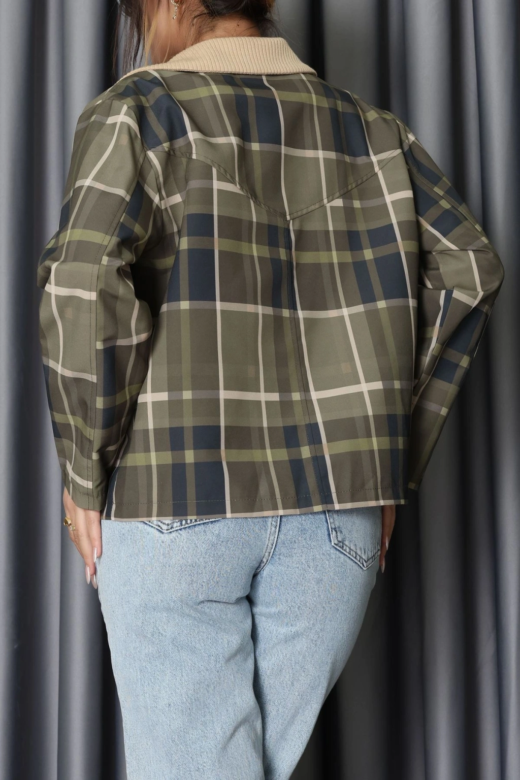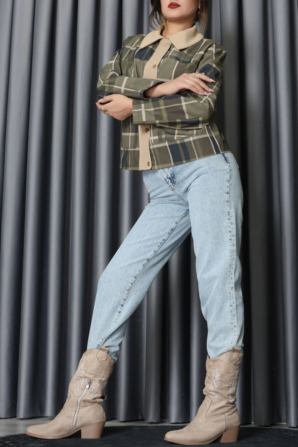 Yaka Detay Ekose Ceket Zümrüt - 7604.2122.