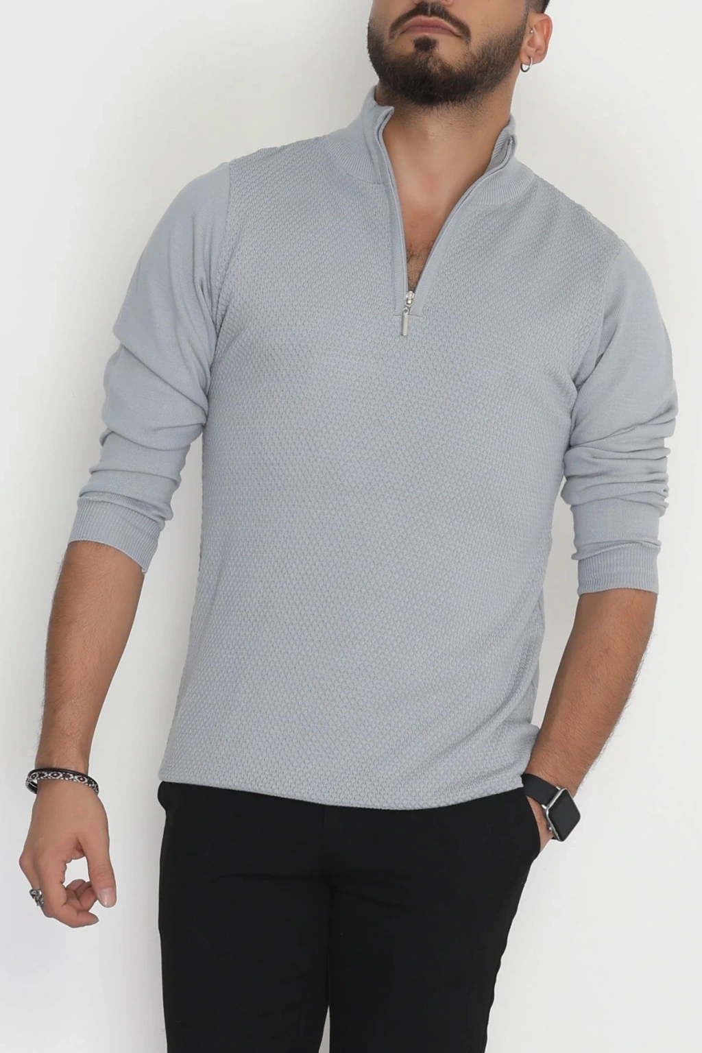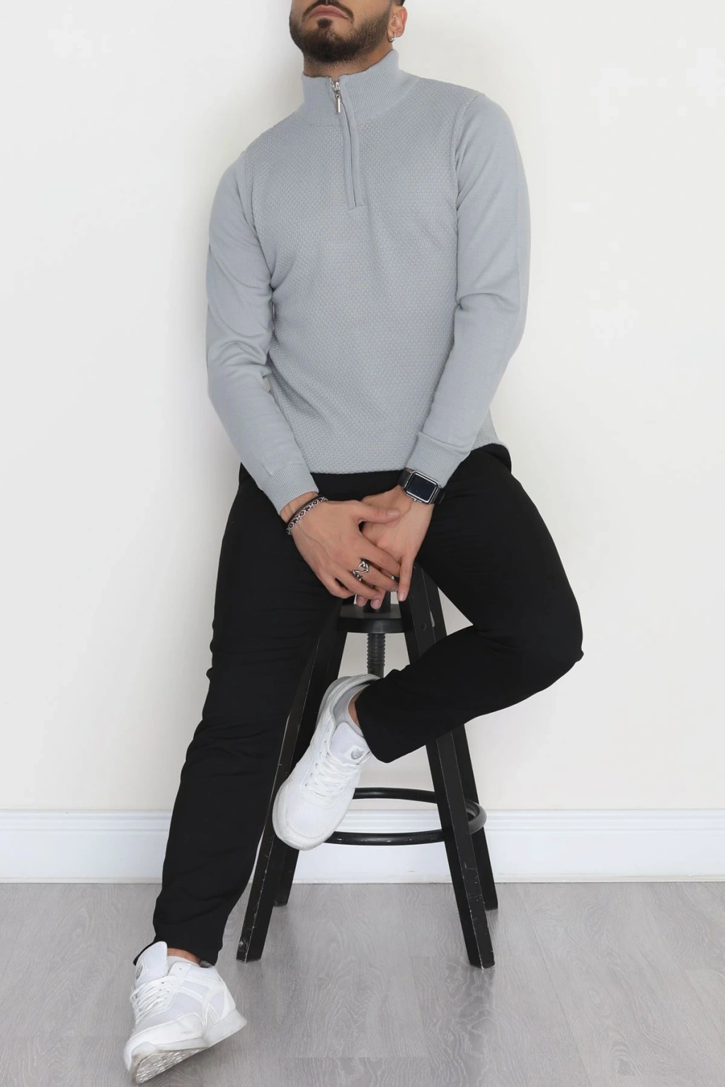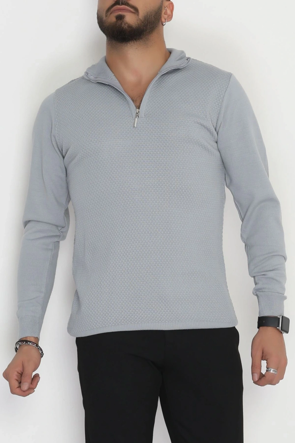 Yakası Fermuarlı Erkek Triko Gri - 2540.2052.
