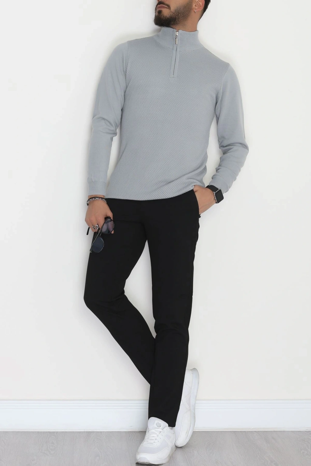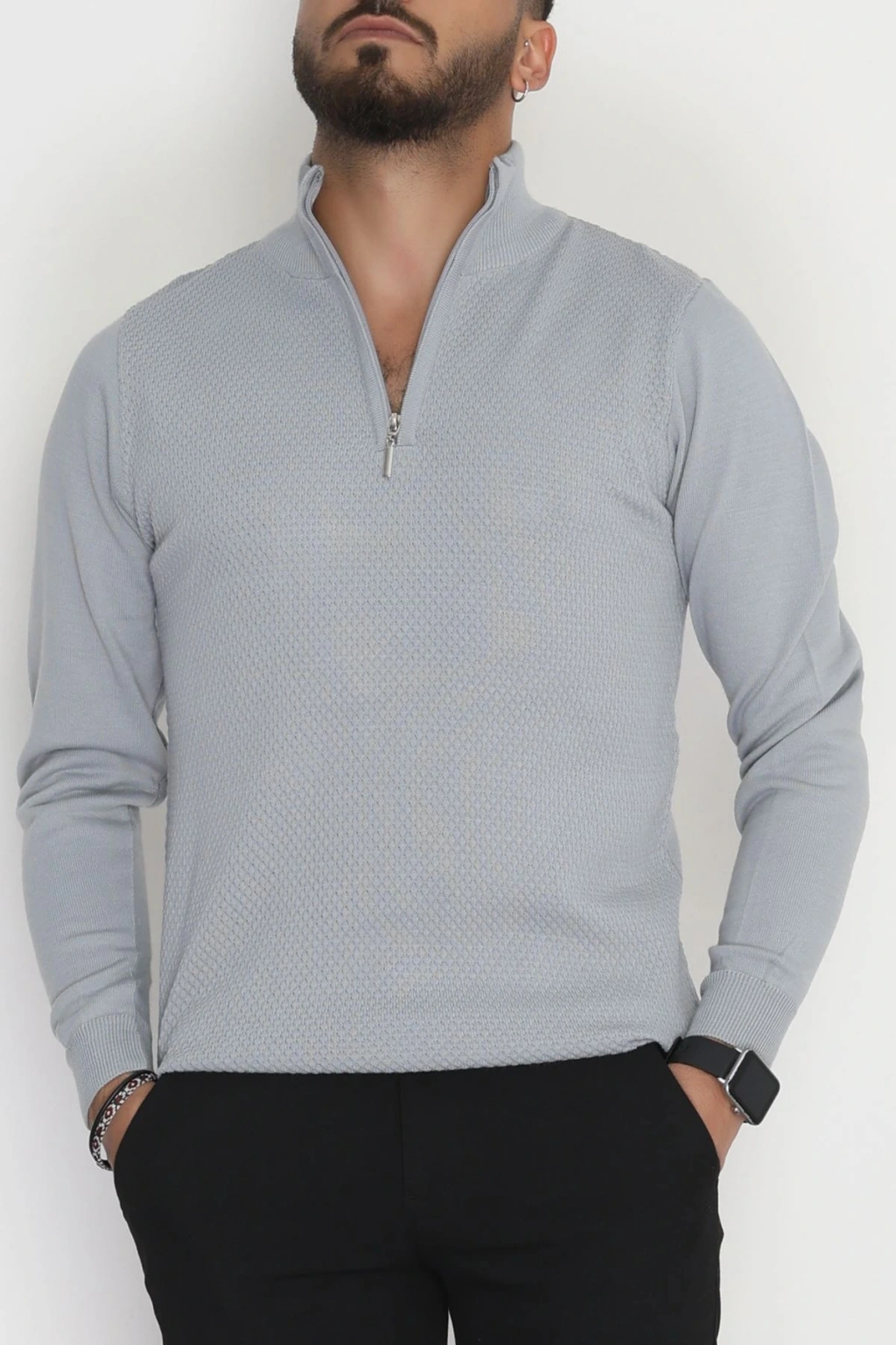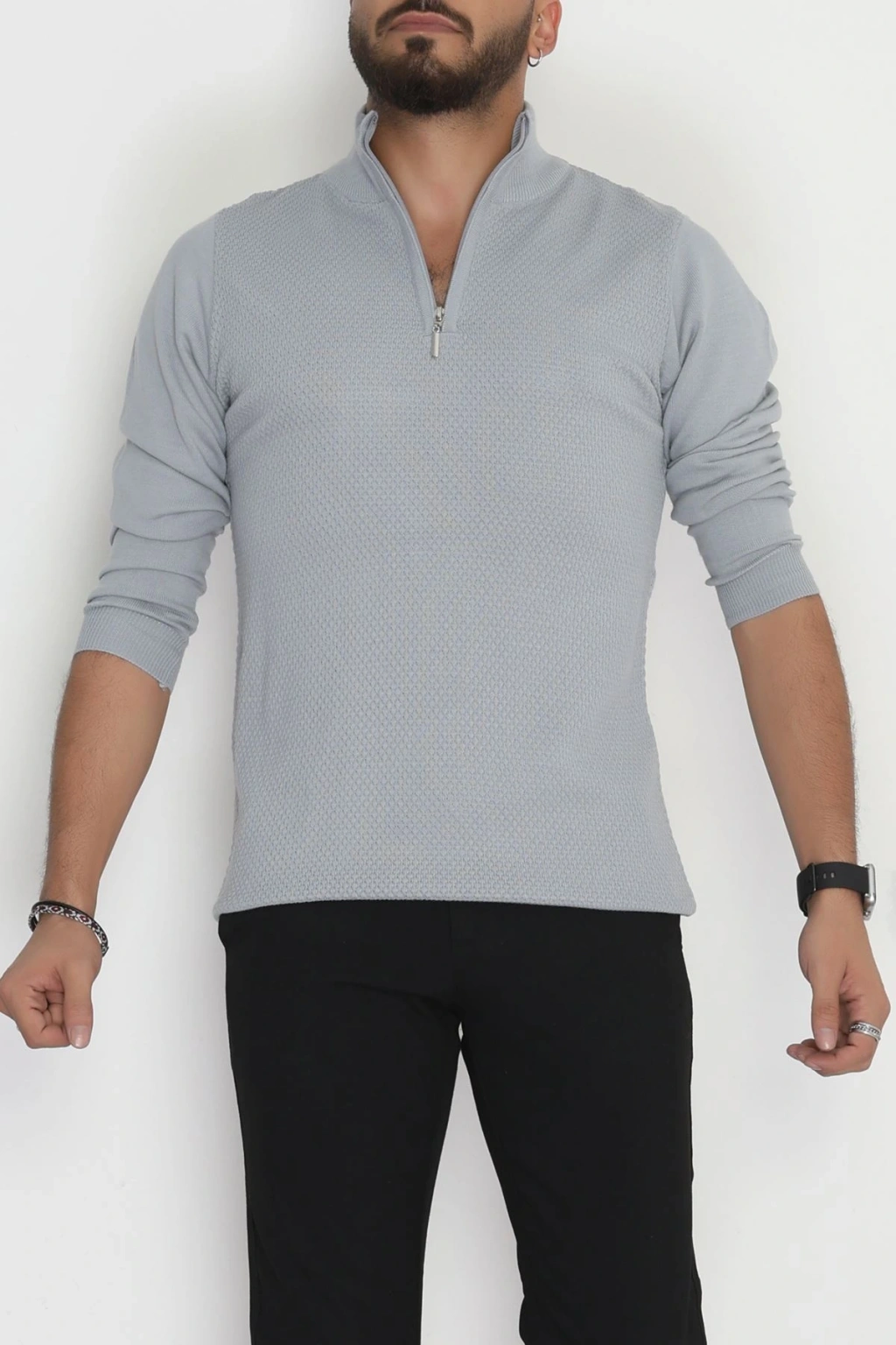 Yakası Fermuarlı Erkek Triko Gri - 2540.2052.