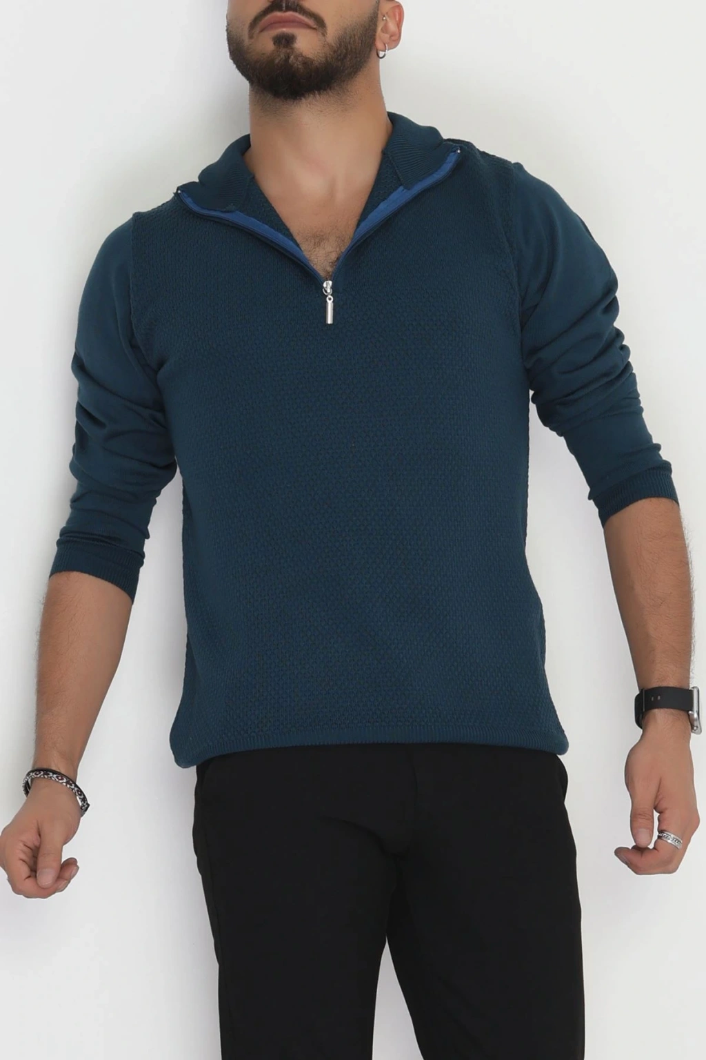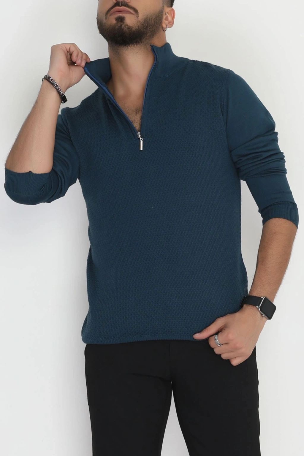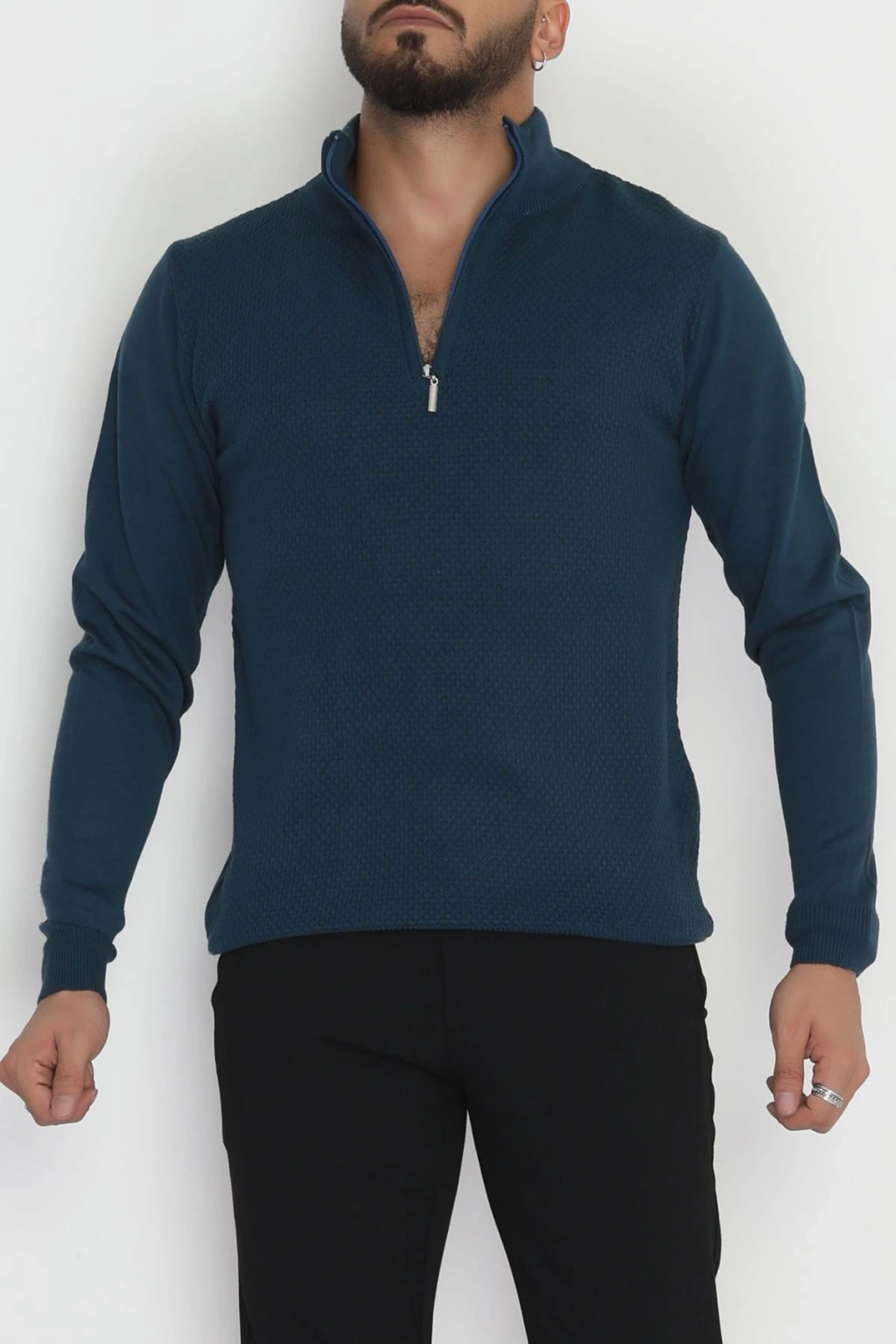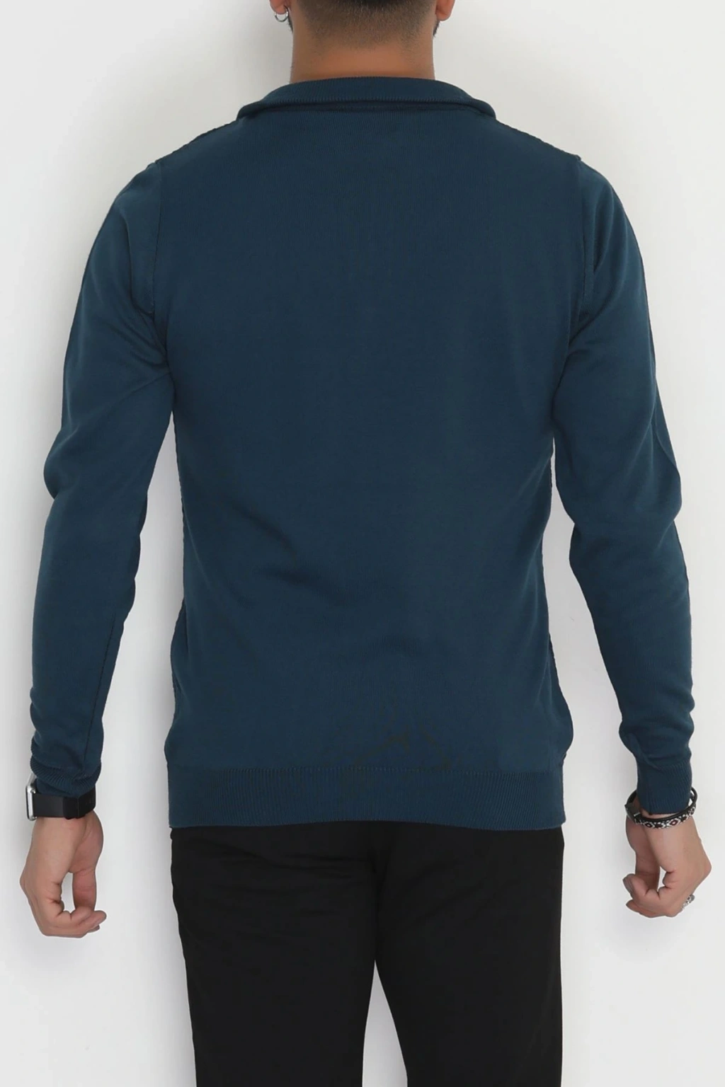 Yakası Fermuarlı Erkek Triko Petrol - 2540.2052.