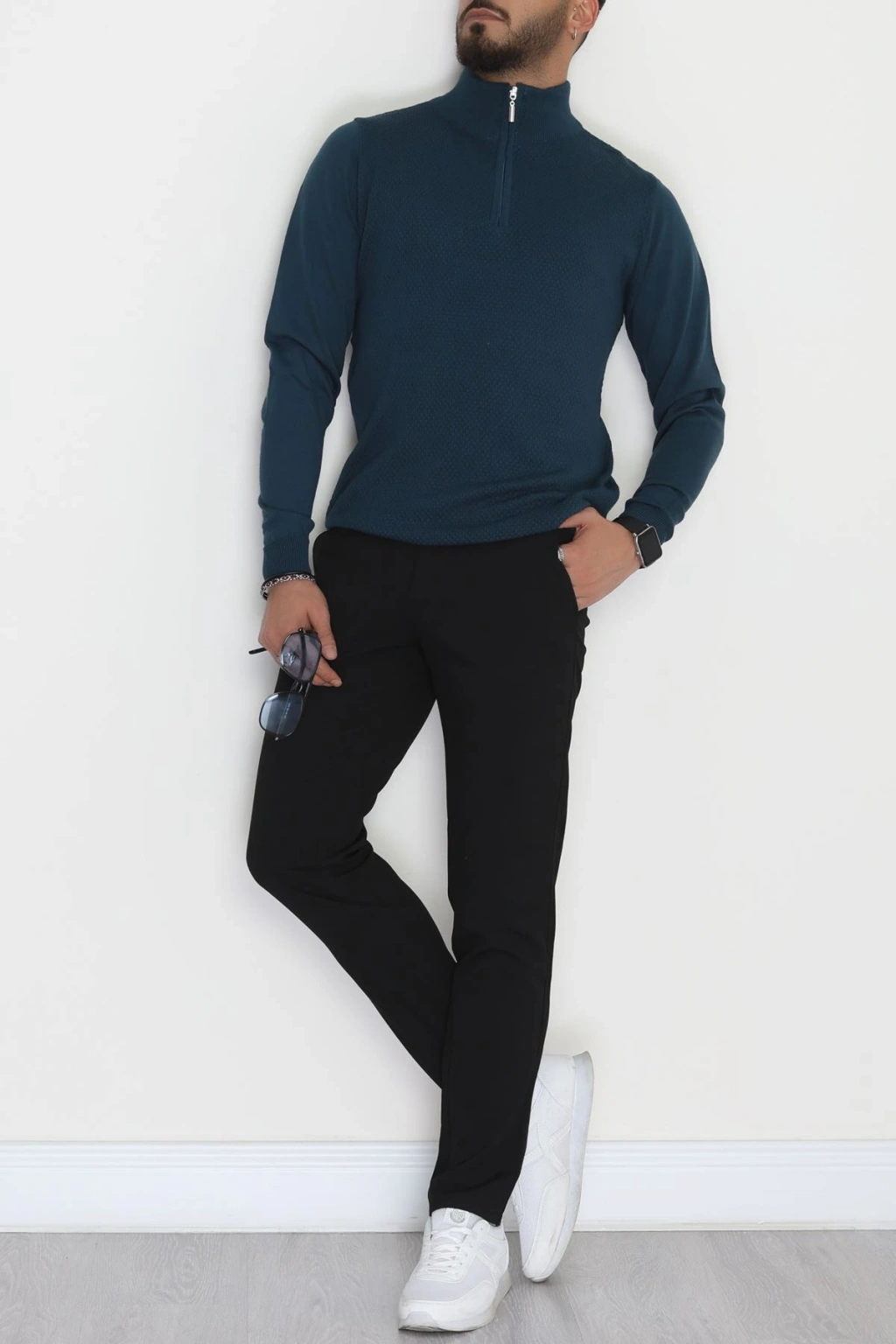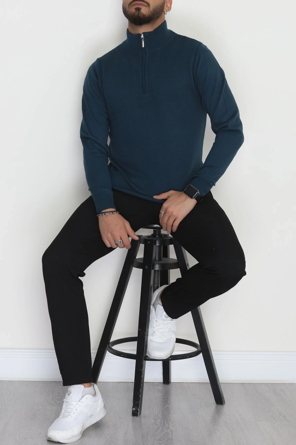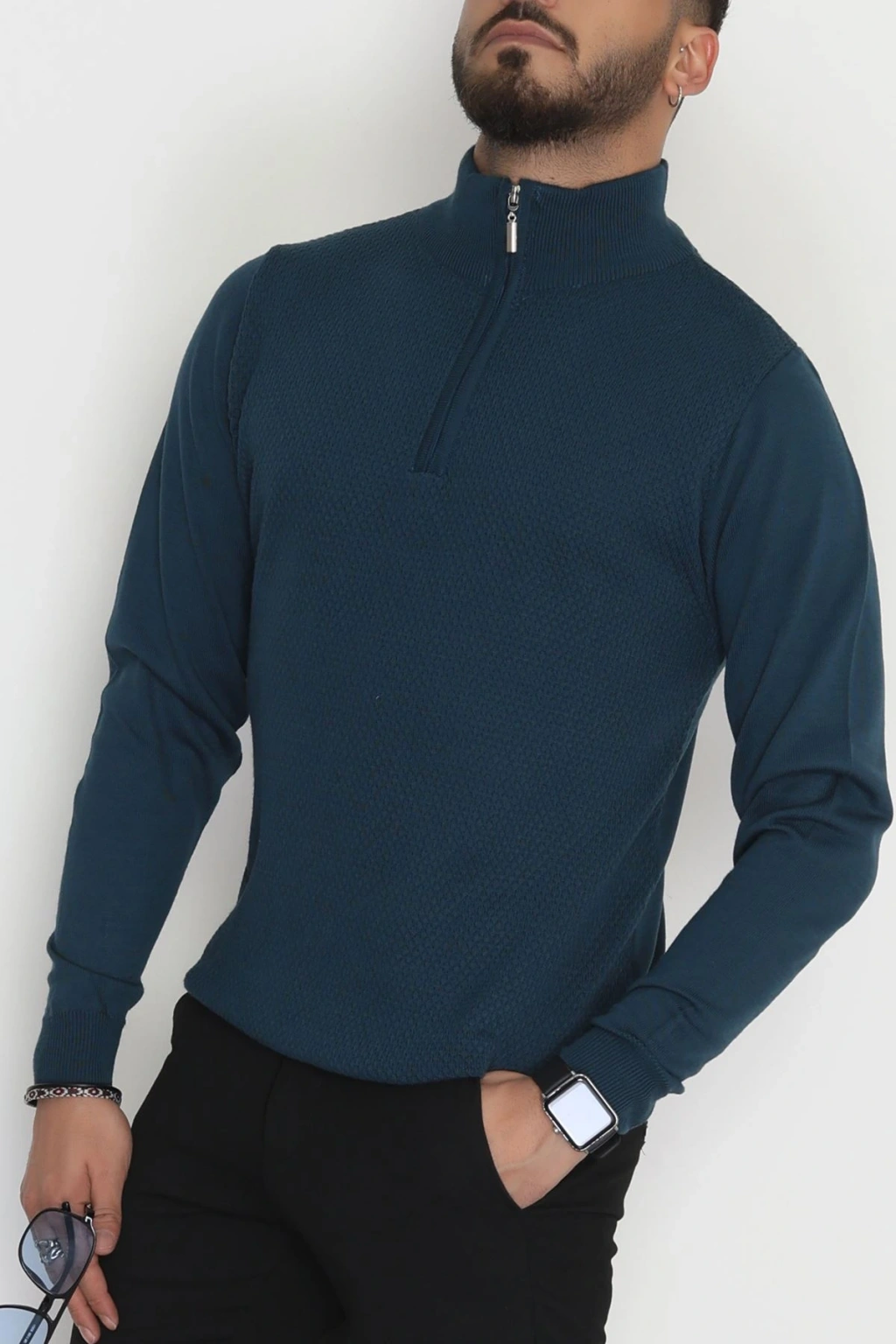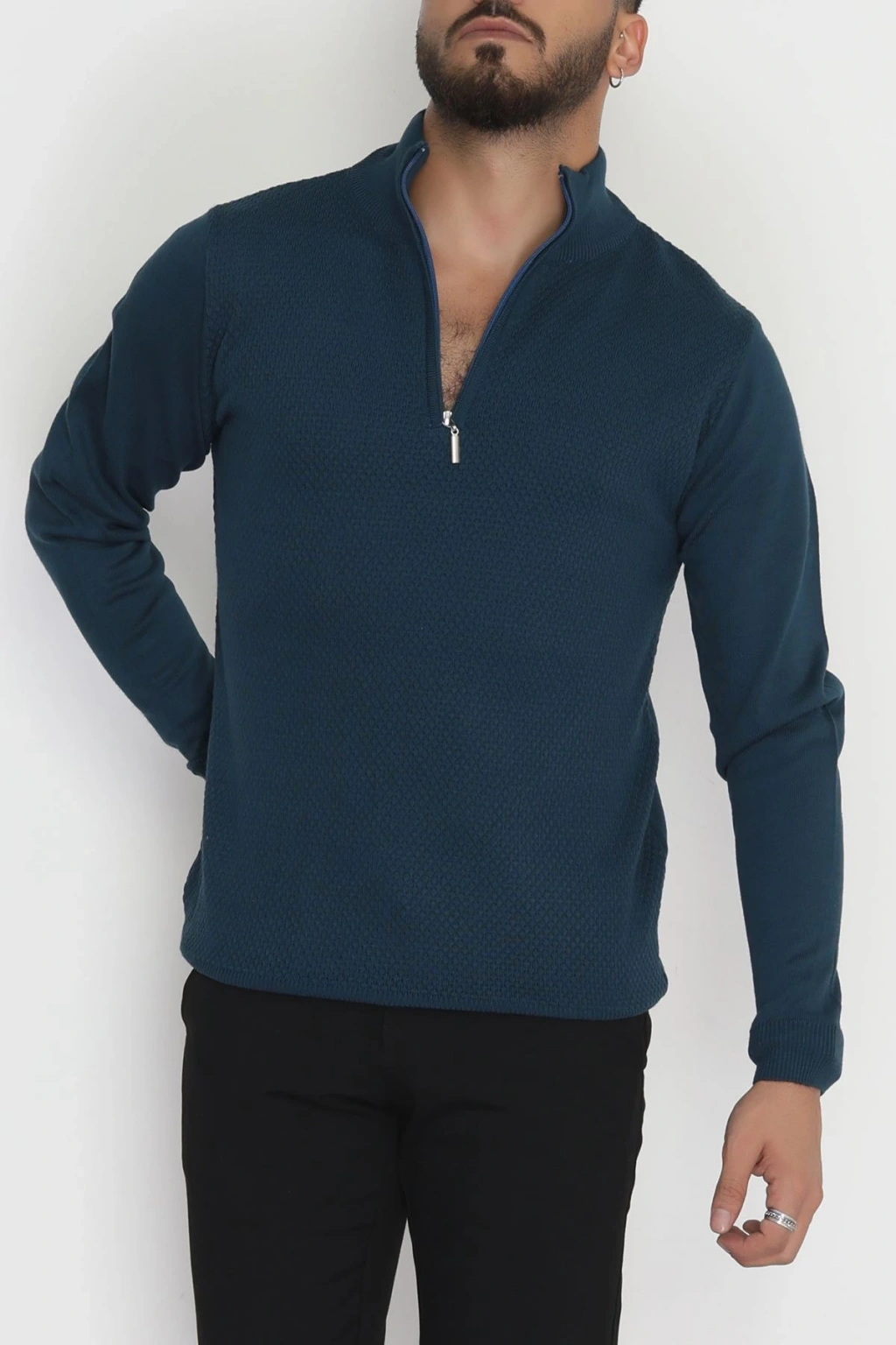 Yakası Fermuarlı Erkek Triko Petrol - 2540.2052.