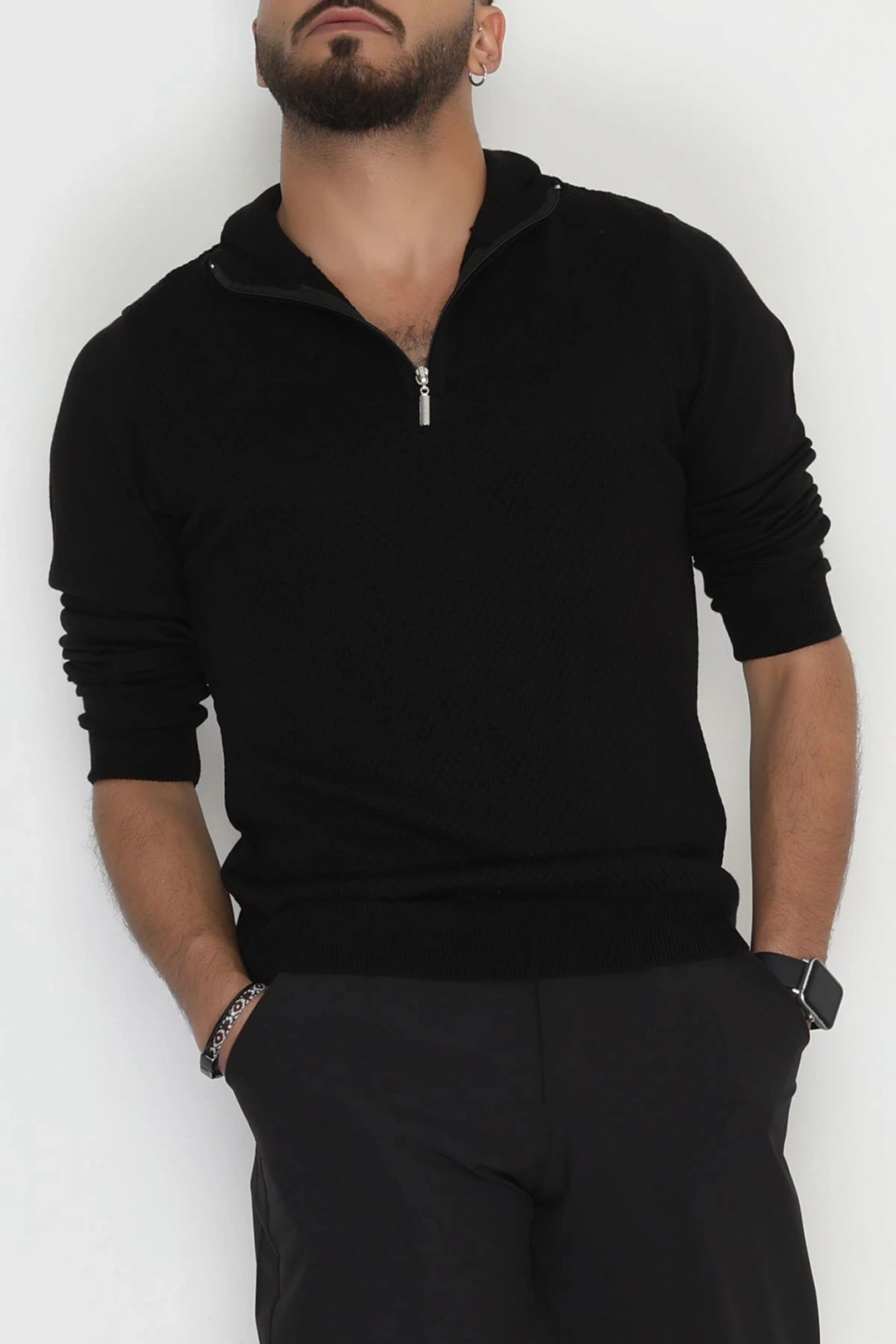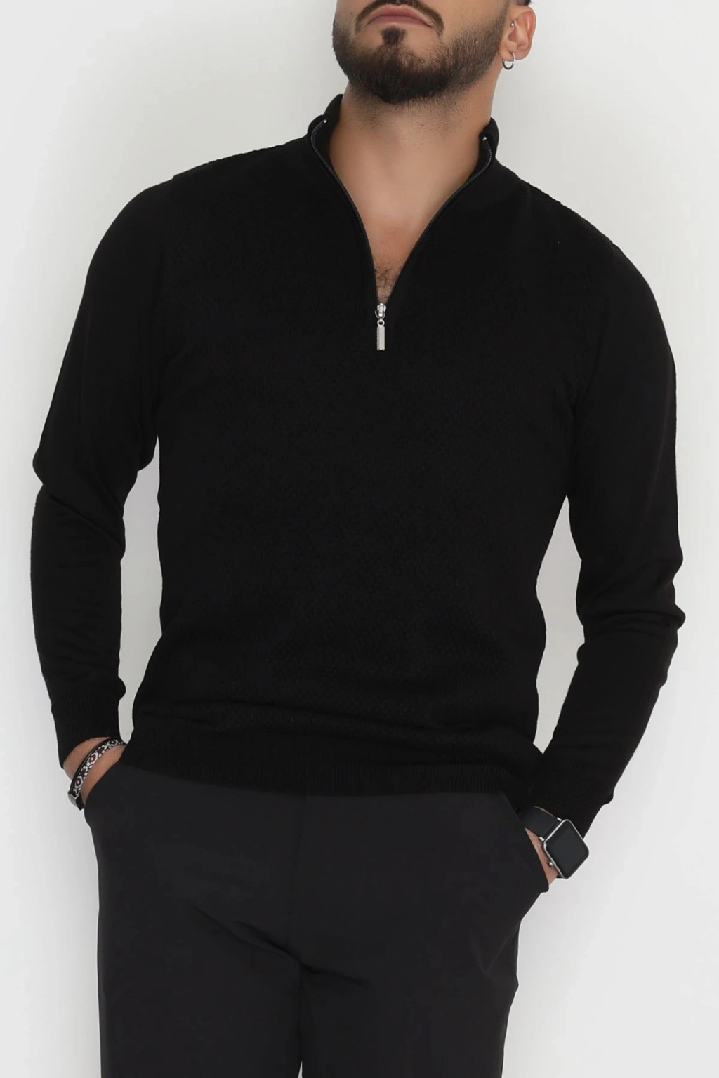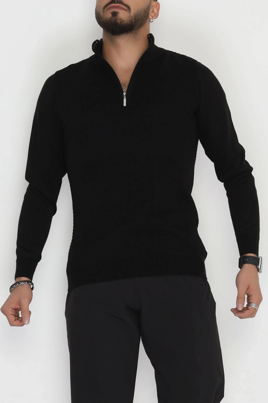 Yakası Fermuarlı Erkek Triko Siyah - 2550.2052.