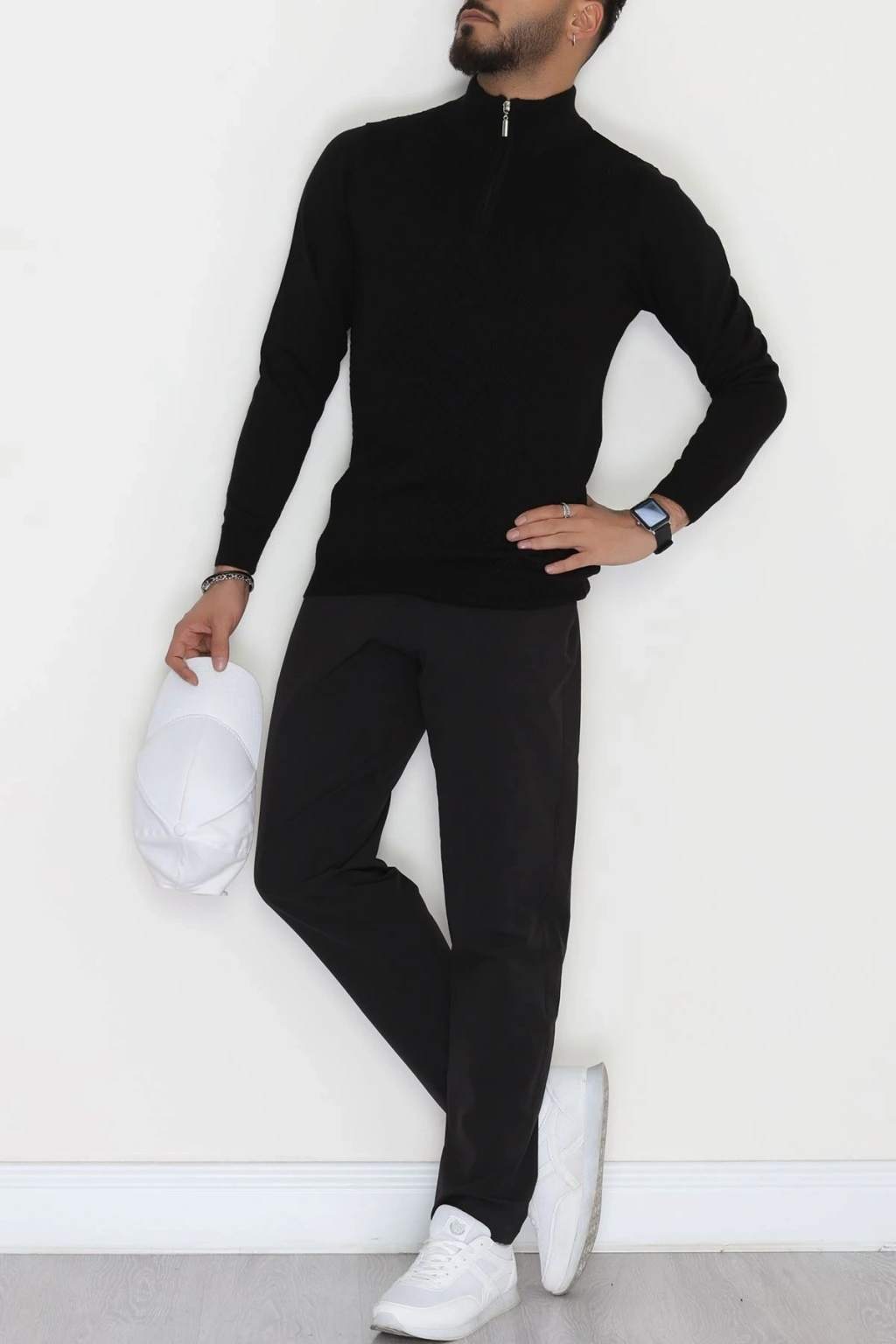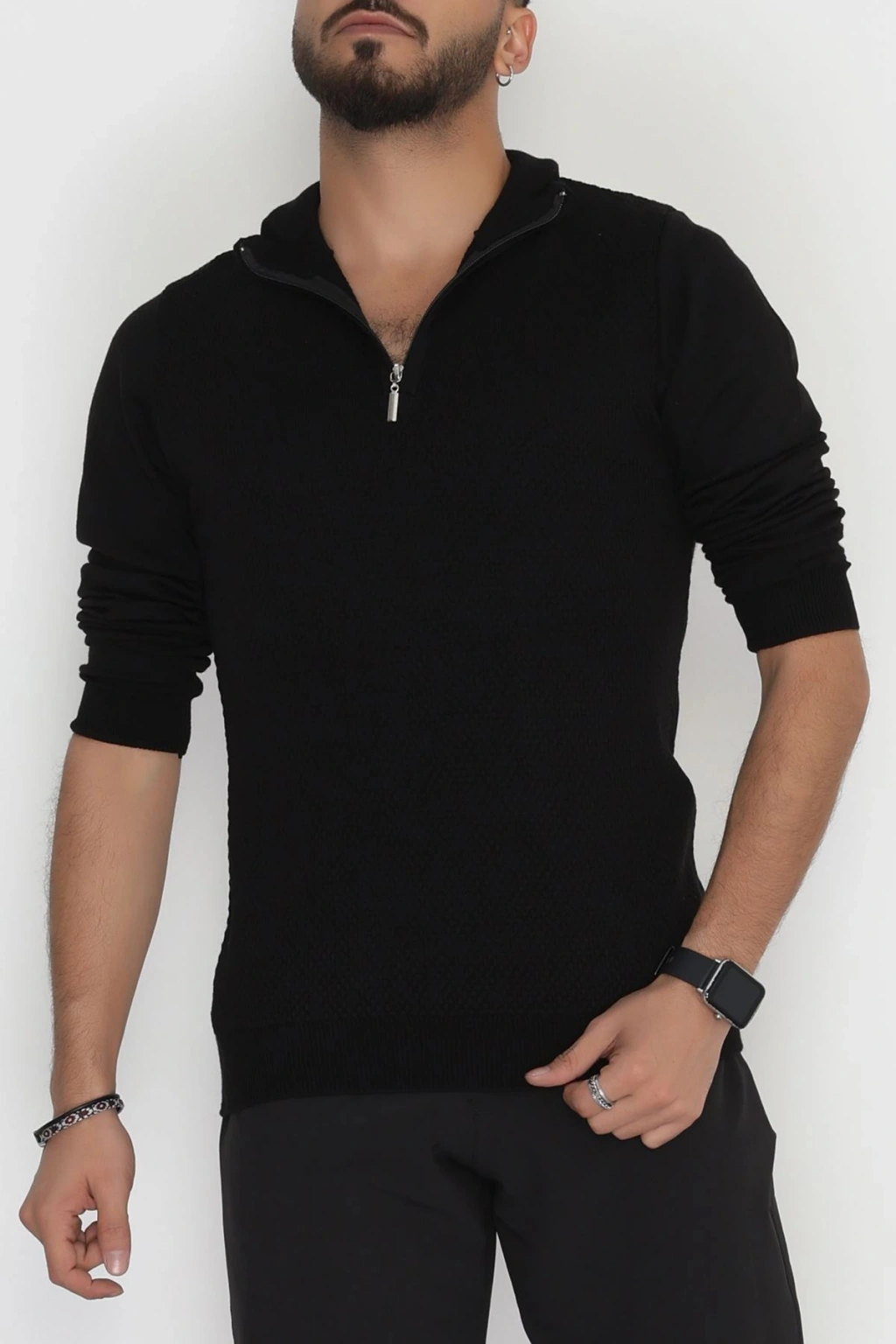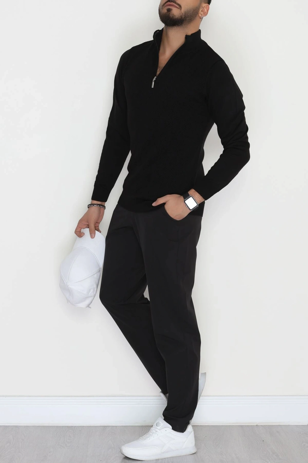 Yakası Fermuarlı Erkek Triko Siyah - 2550.2052.