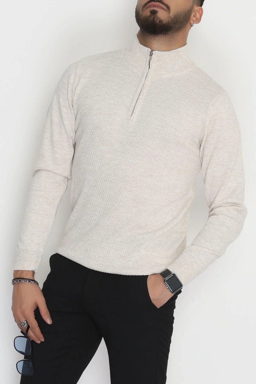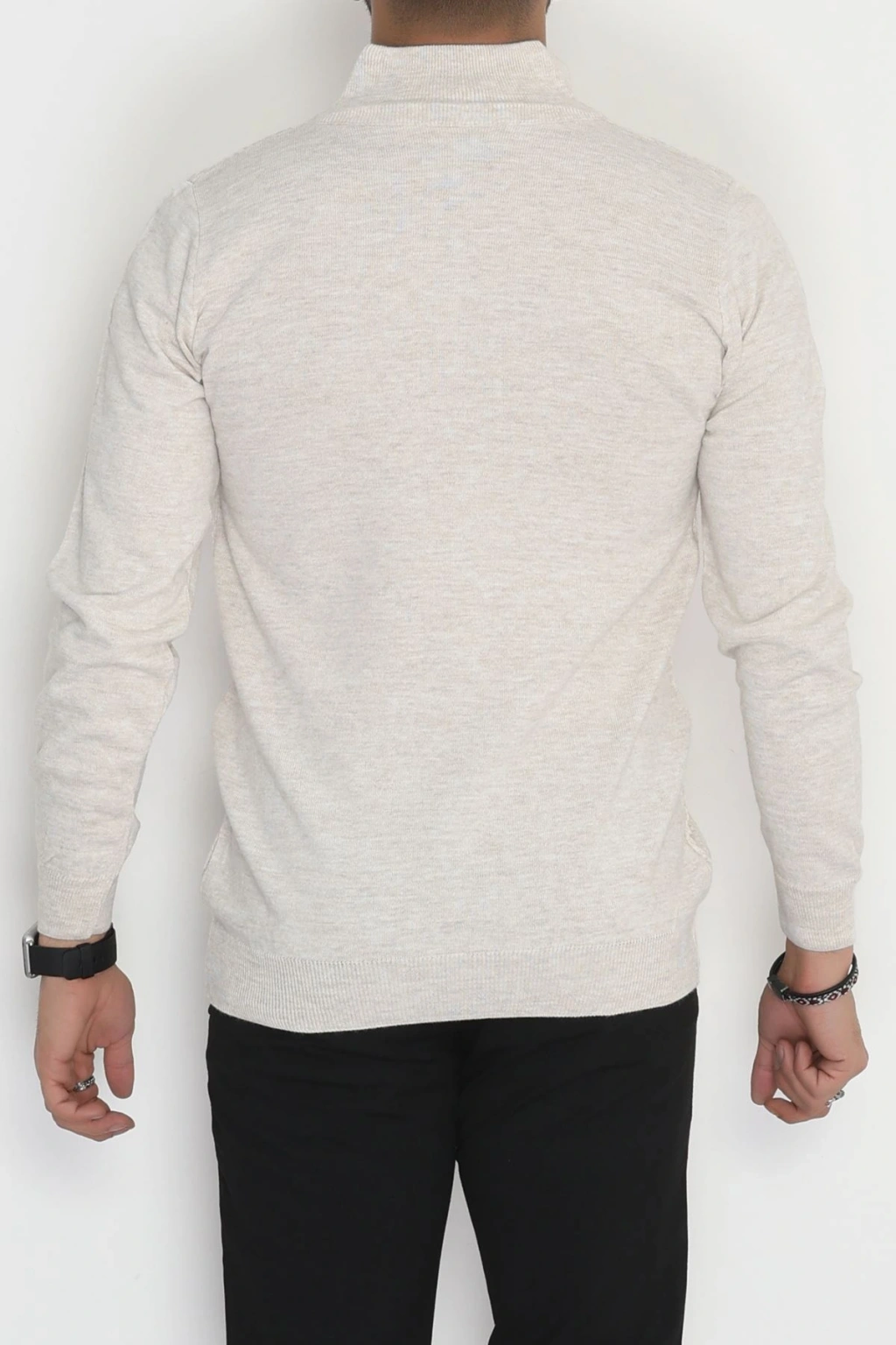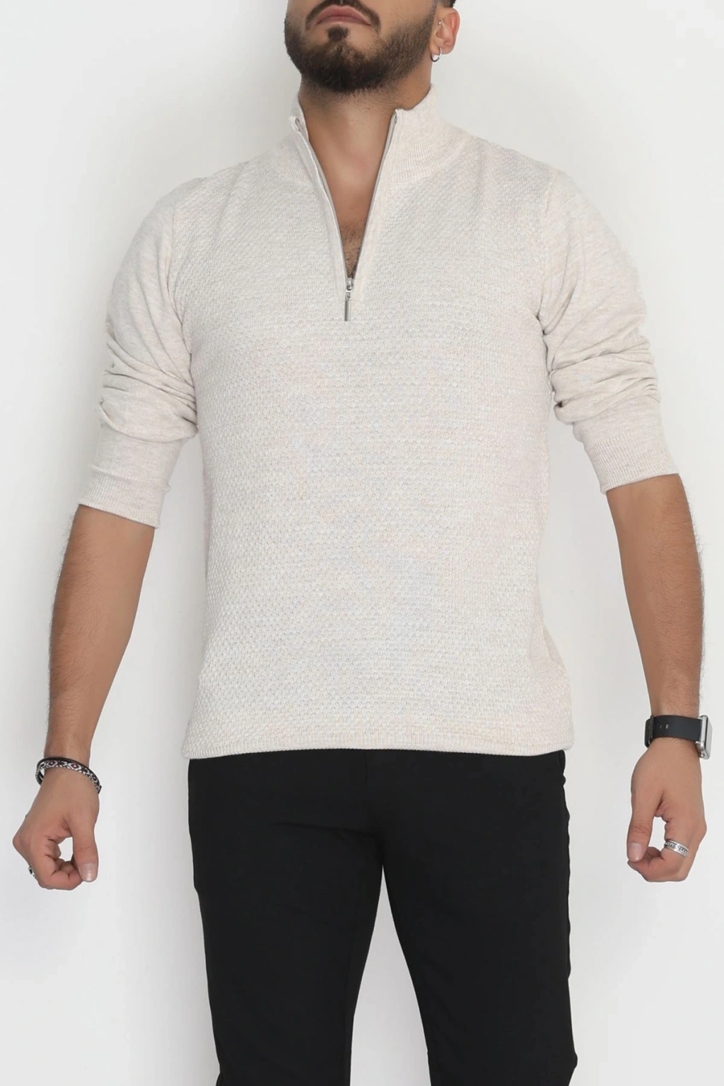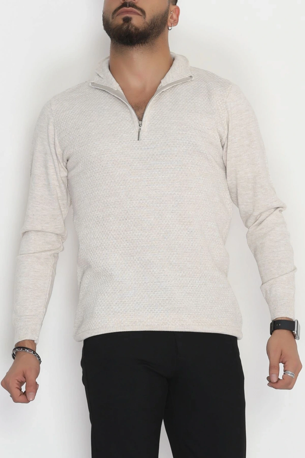 Yakası Fermuarlı Erkek Triko Taş - 2540.2052.