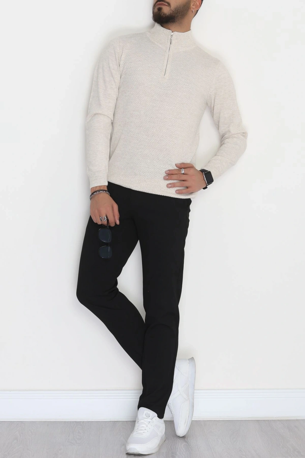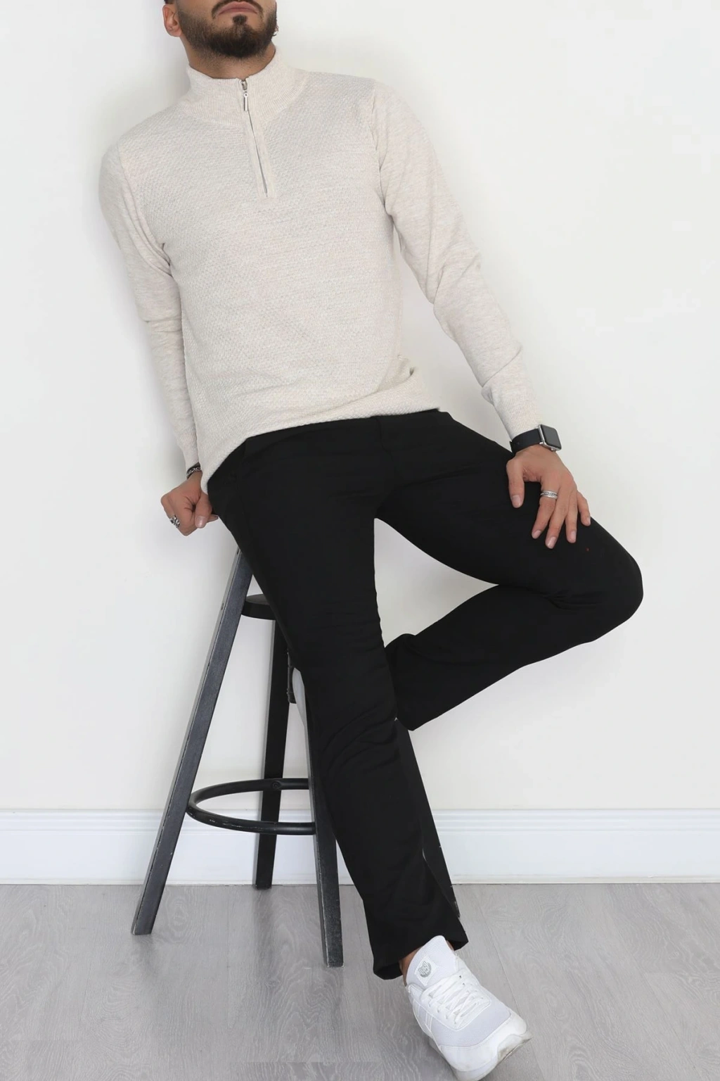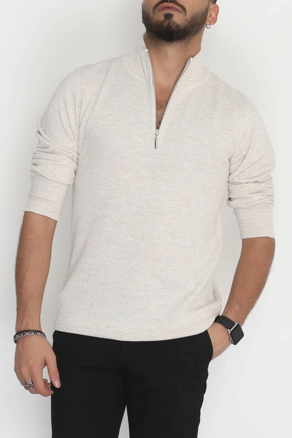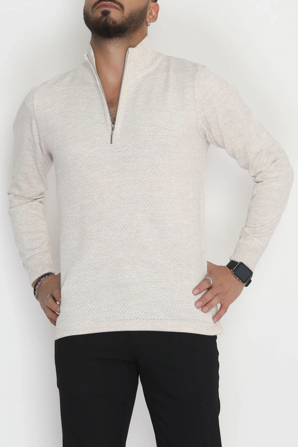 Yakası Fermuarlı Erkek Triko Taş - 2540.2052.