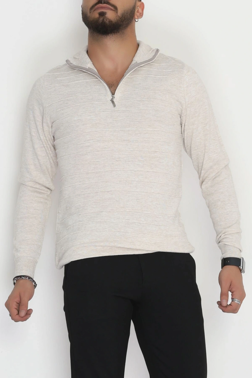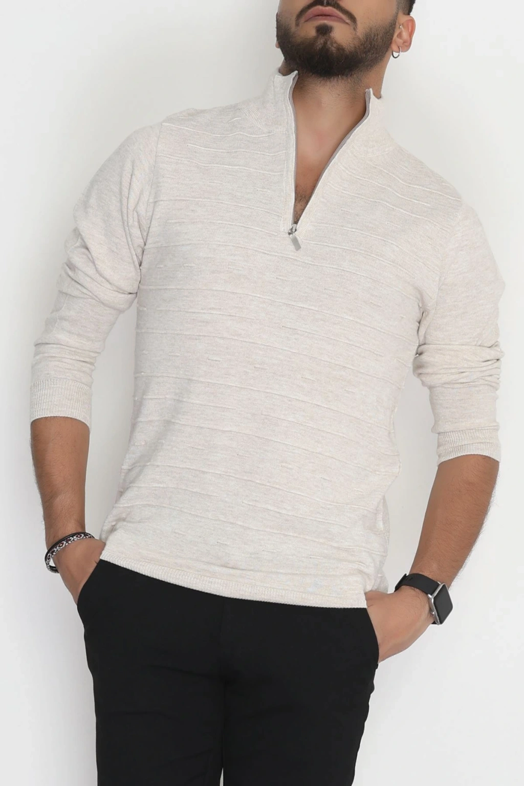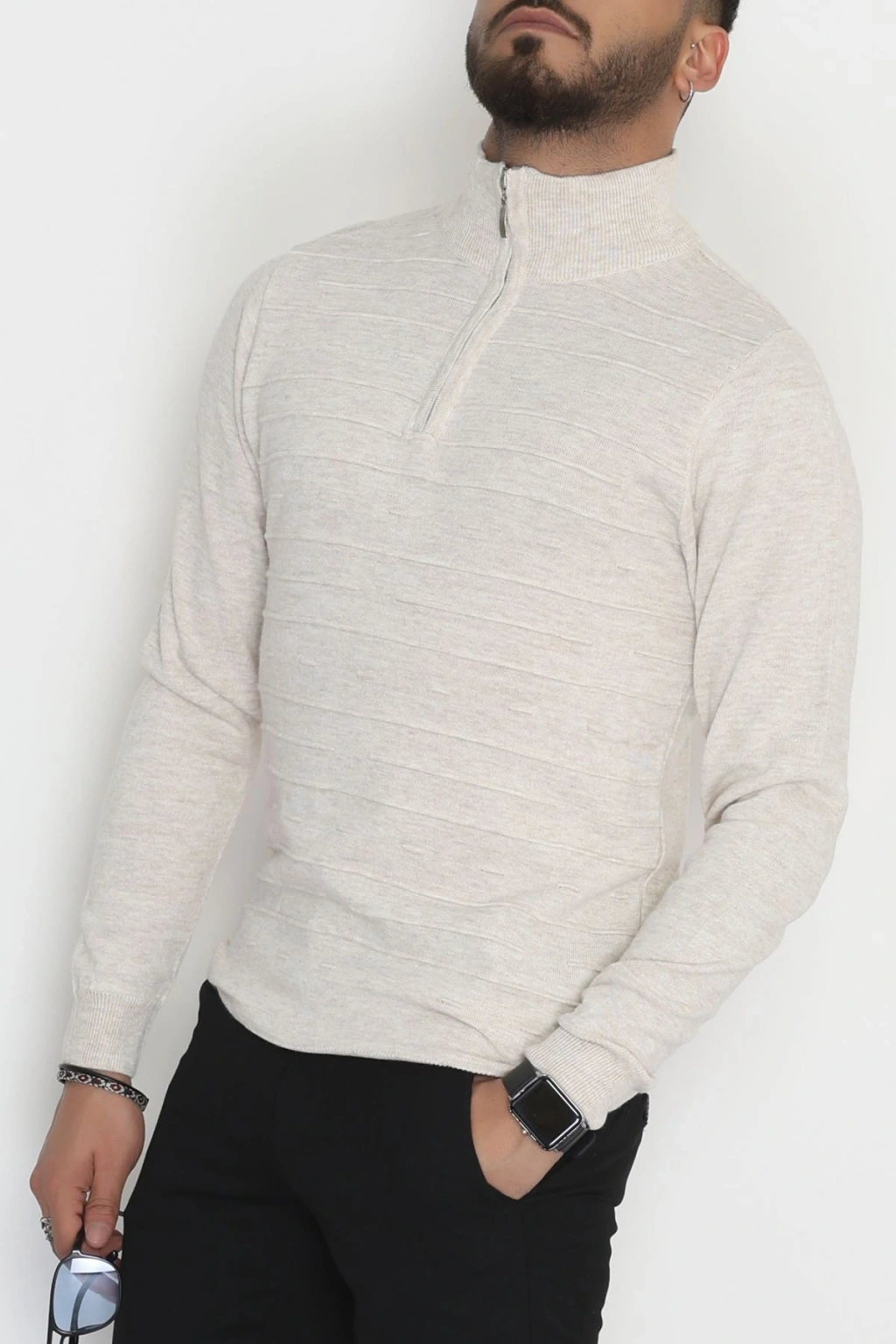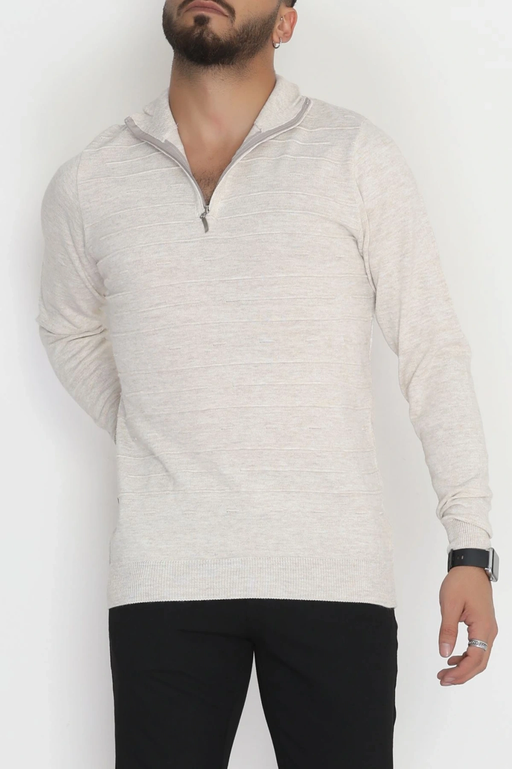 Yakası Fermuarlı Erkek Triko Taş - 2550.2052.