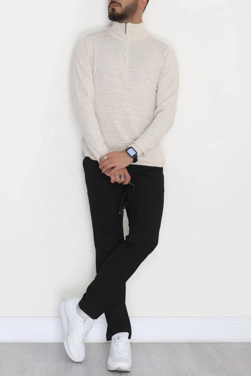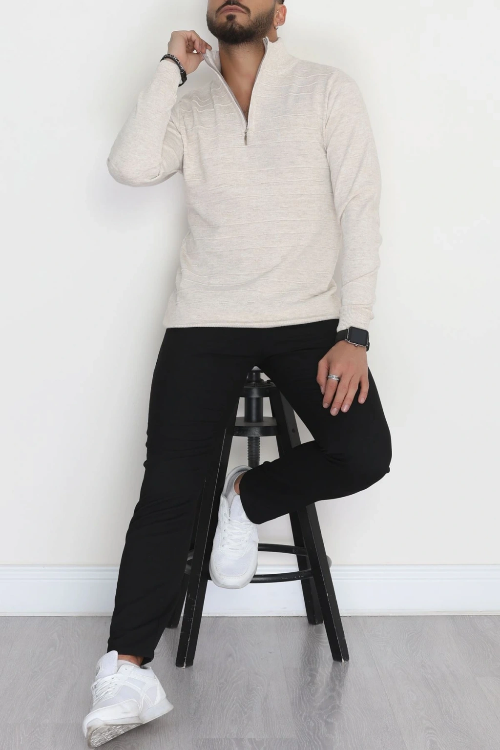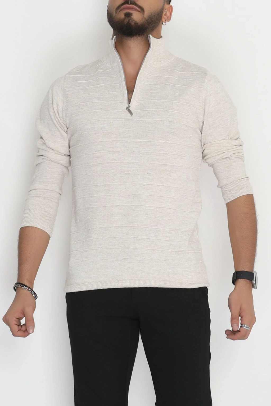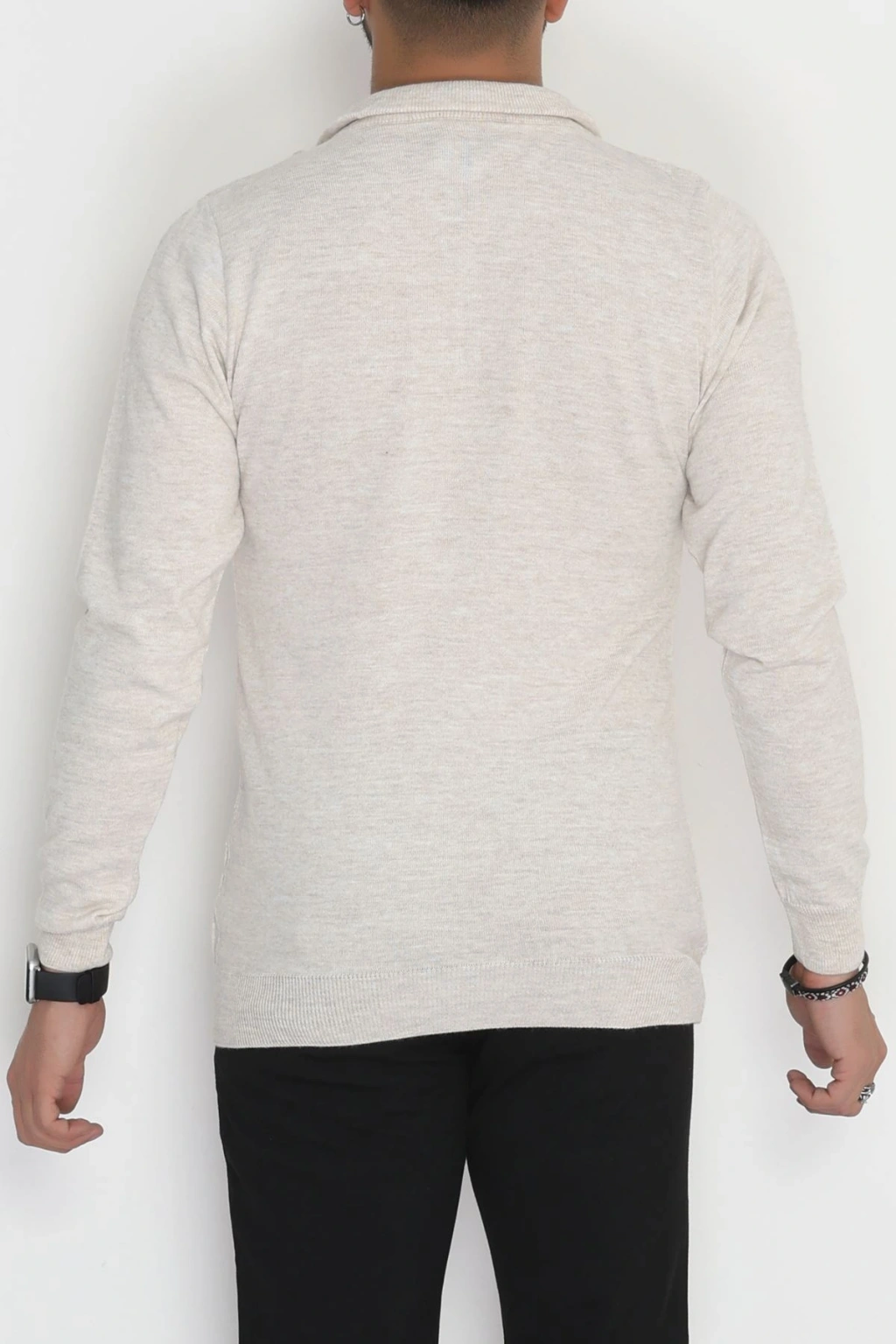 Yakası Fermuarlı Erkek Triko Taş - 2550.2052.