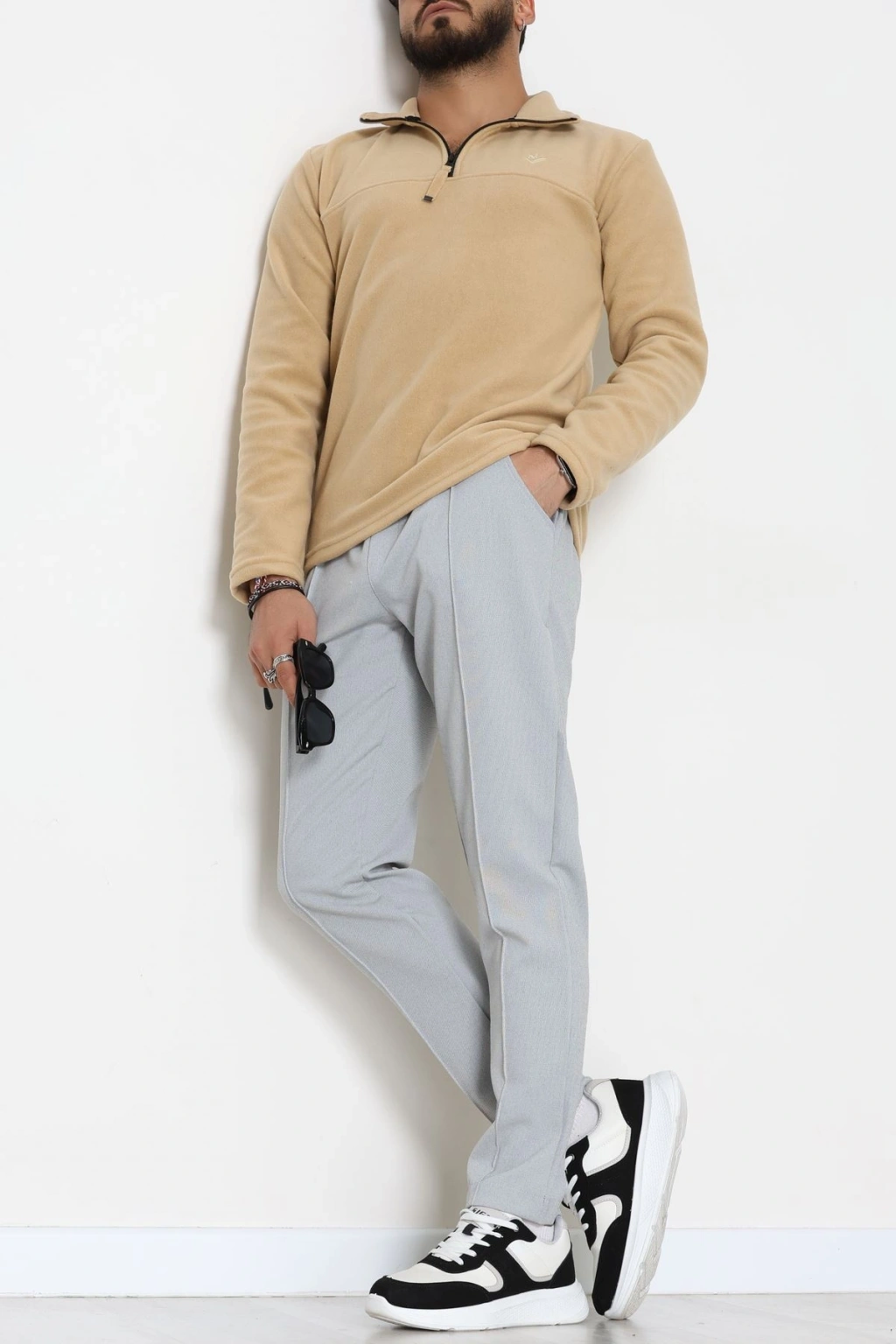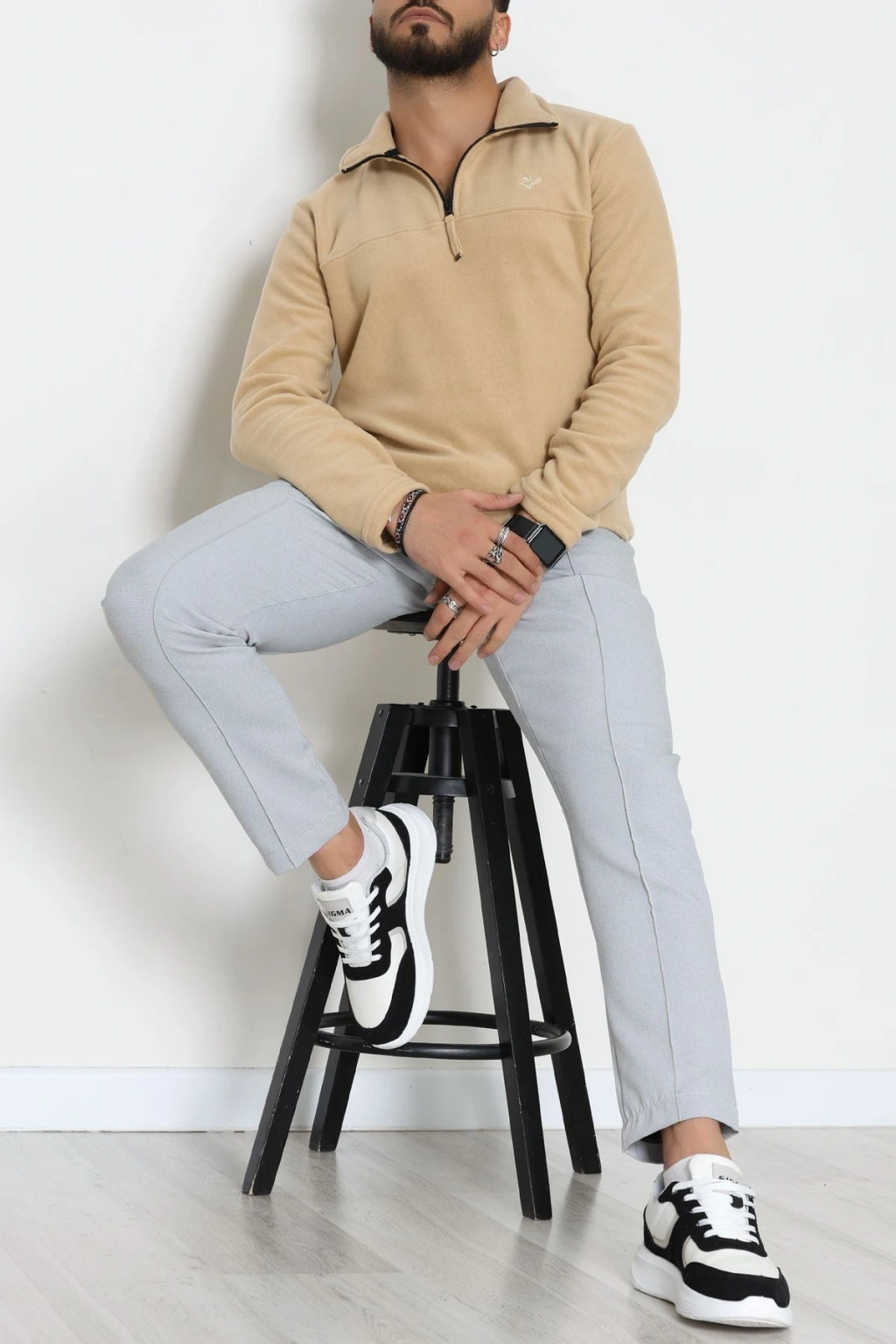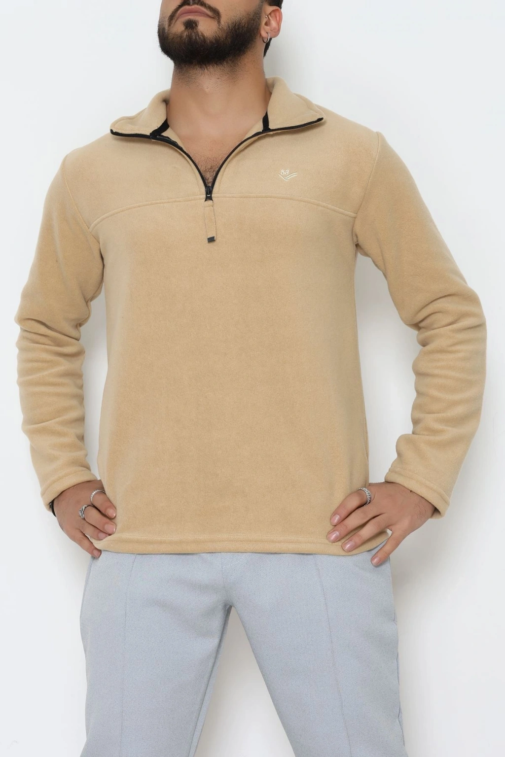 Yakası Fermuarlı Polar Erkek Sweat Bej - 51269.1937.
