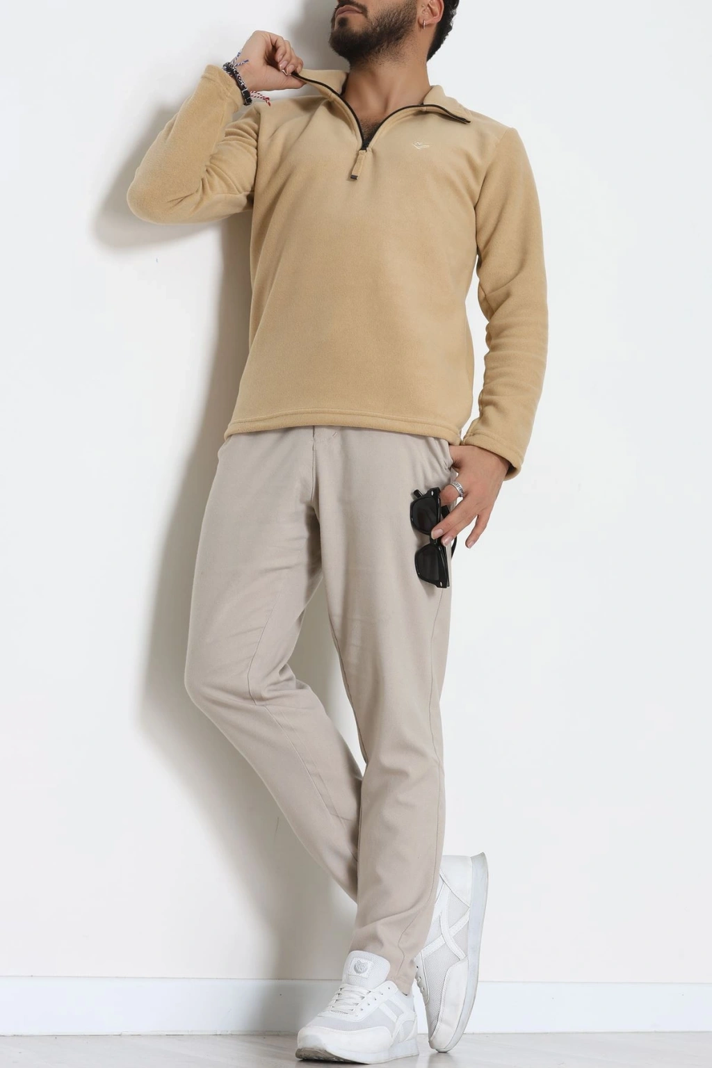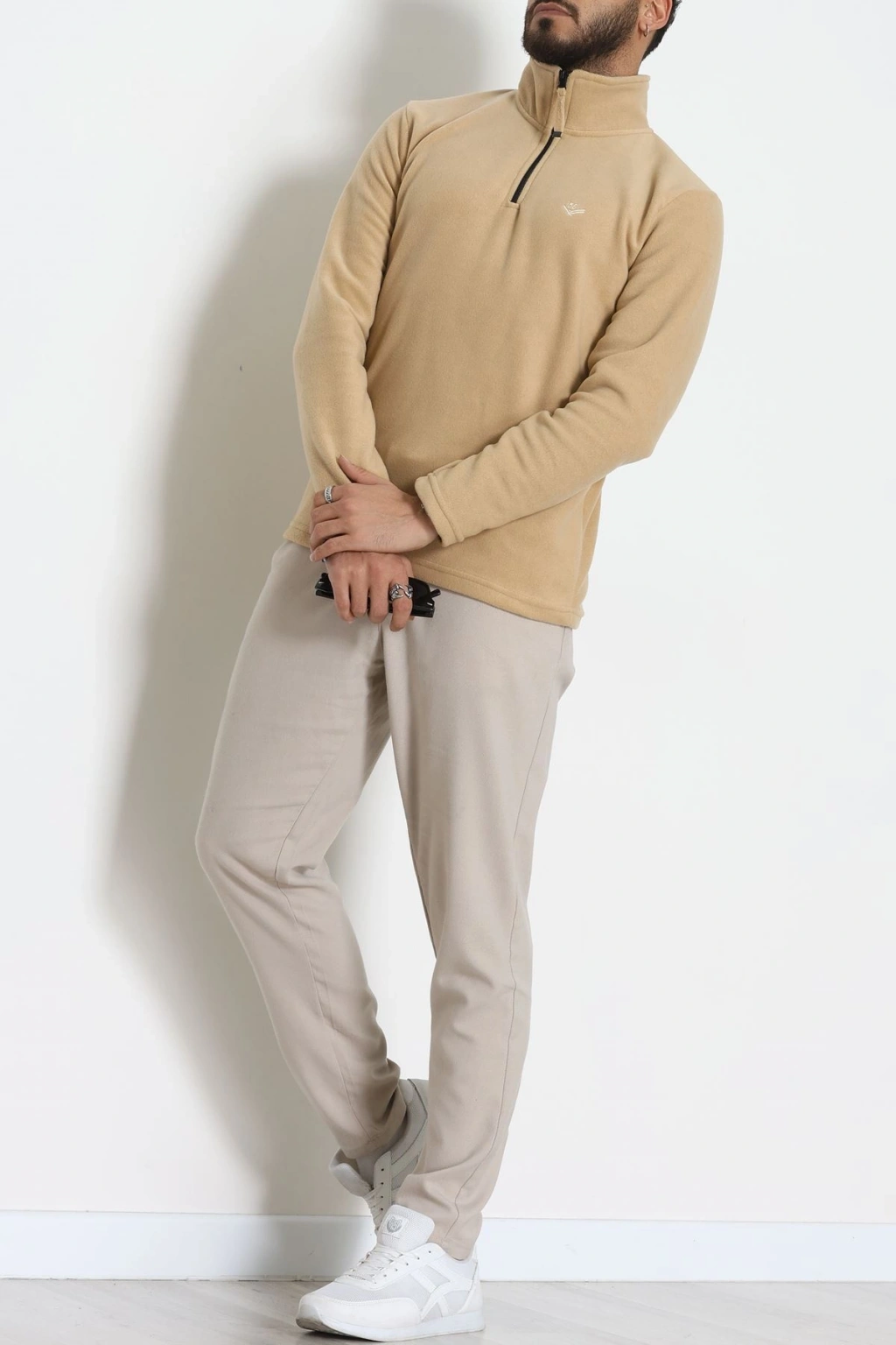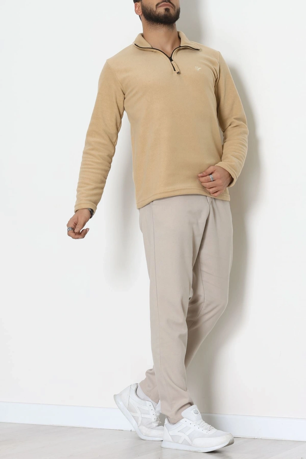Yakası Fermuarlı Polar Erkek Sweat Camel - 42556.1937.