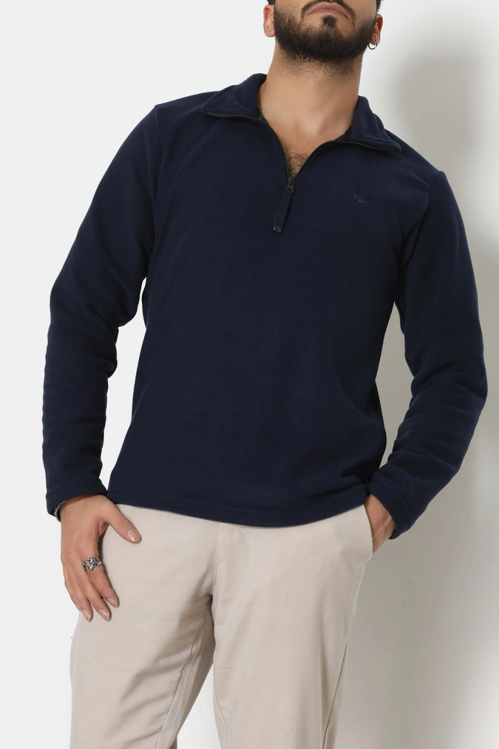 Yakası Fermuarlı Polar Erkek Sweat Lacivert - 42556.1937.