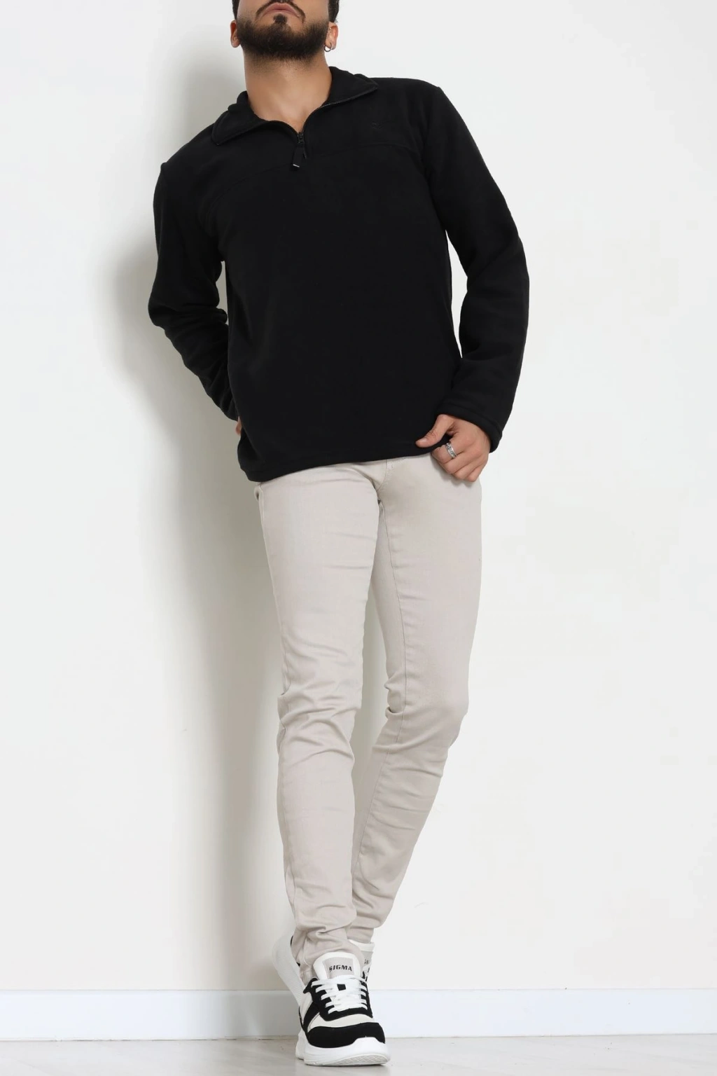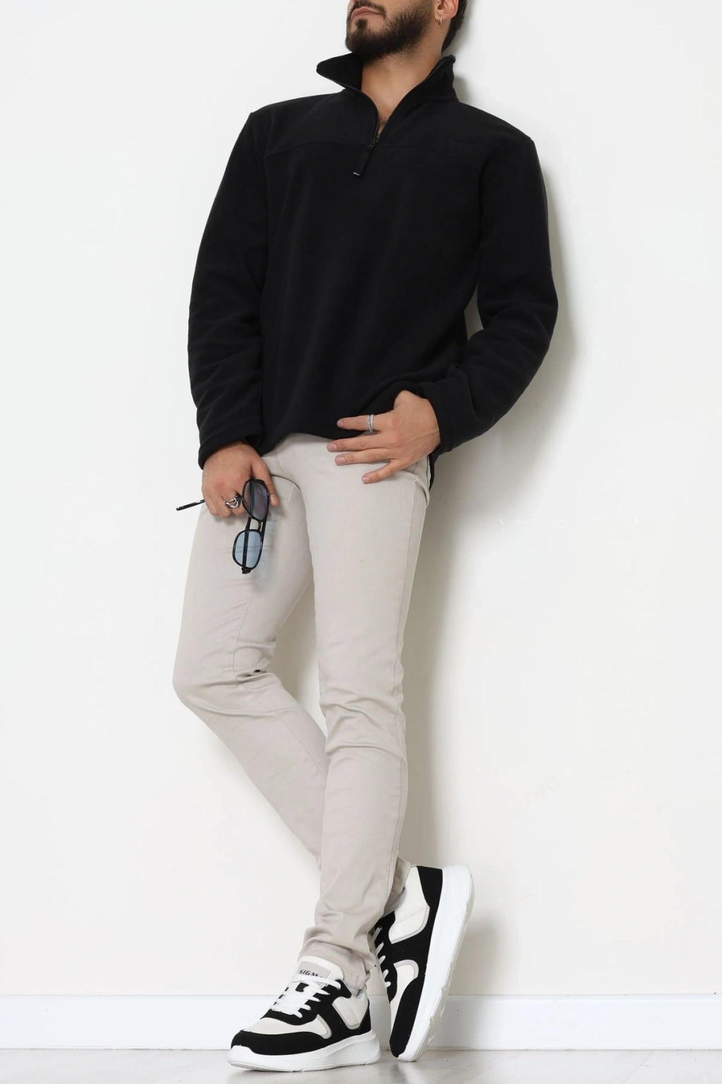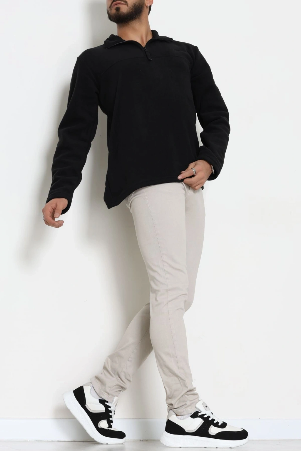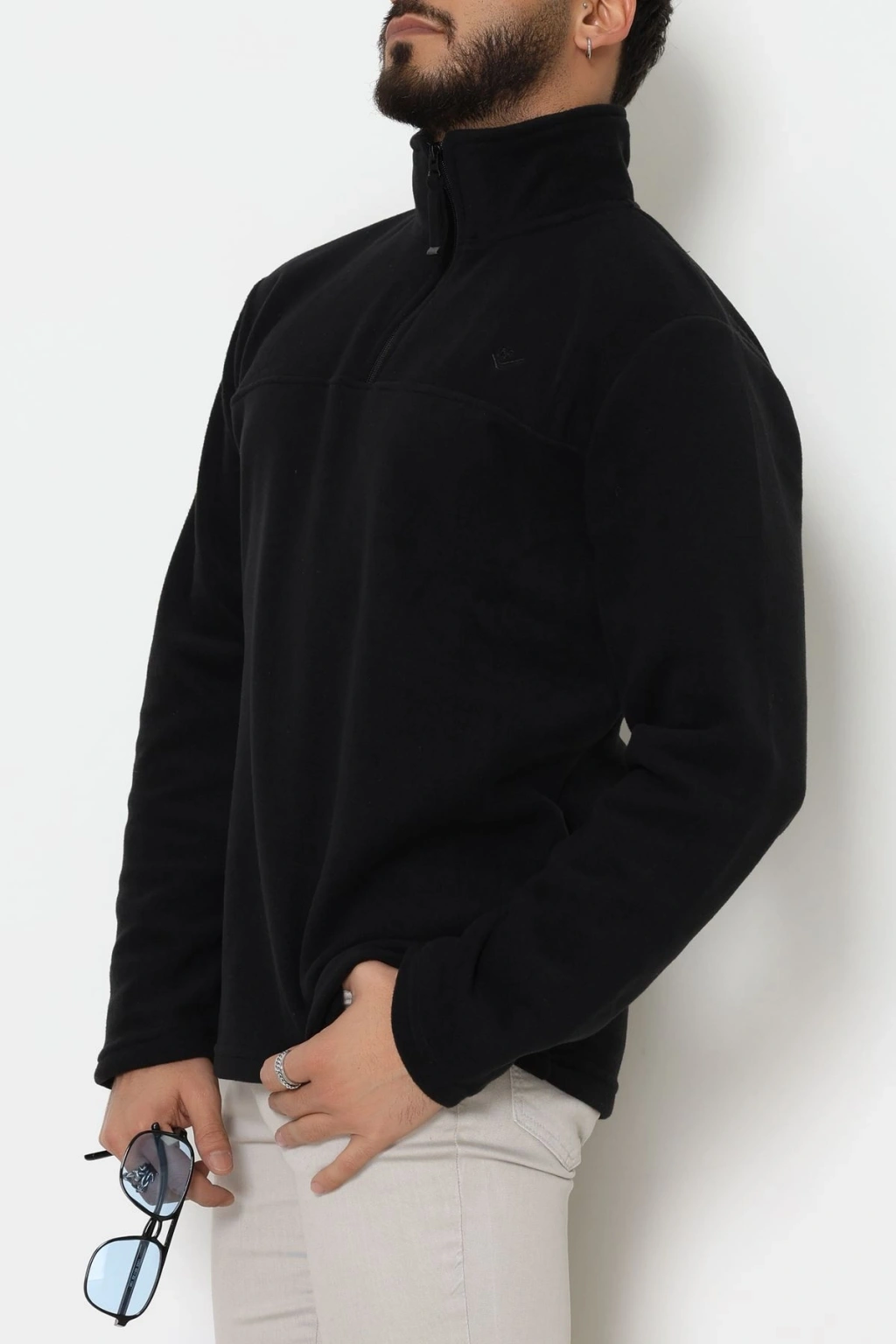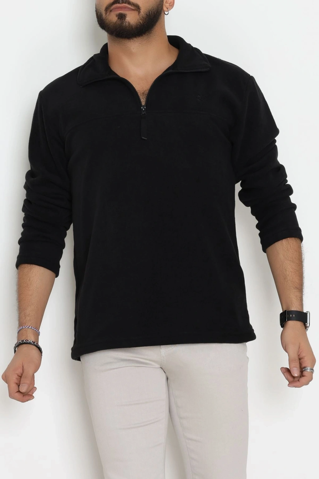 Yakası Fermuarlı Polar Erkek Sweat Siyah - 51269.1937.