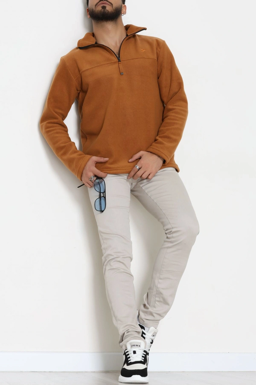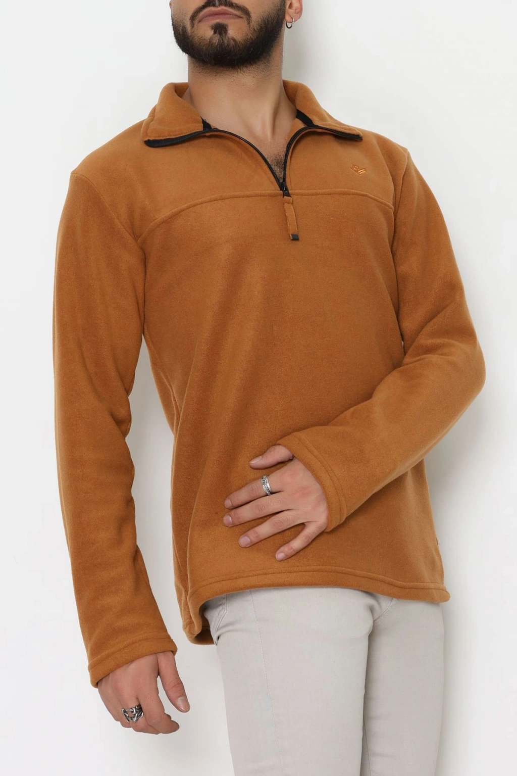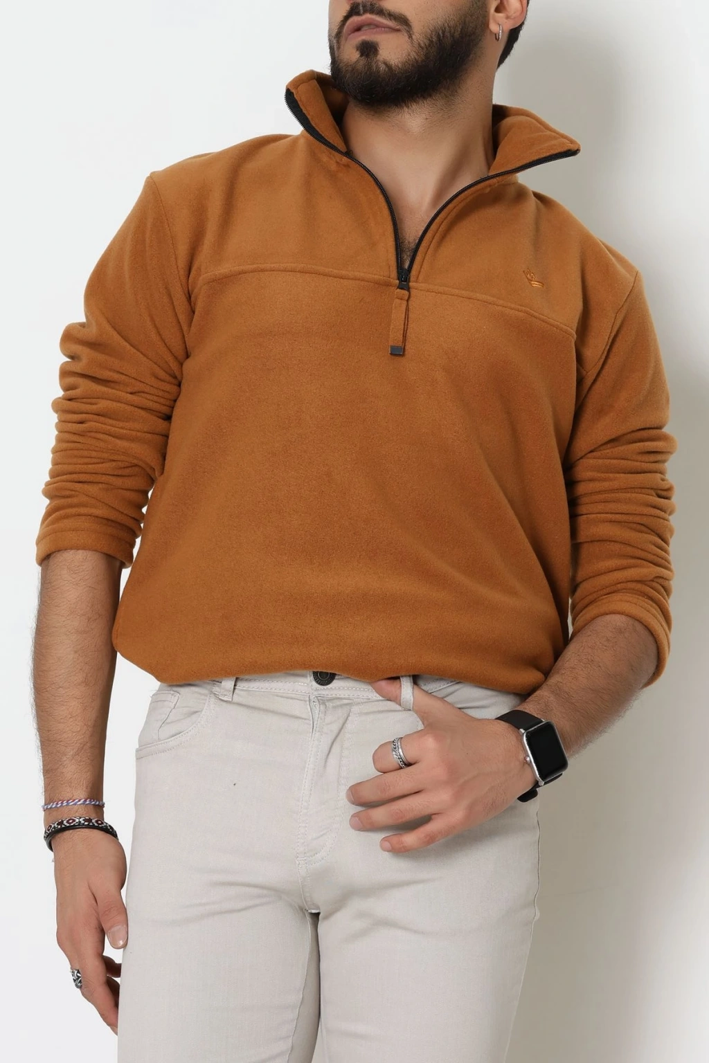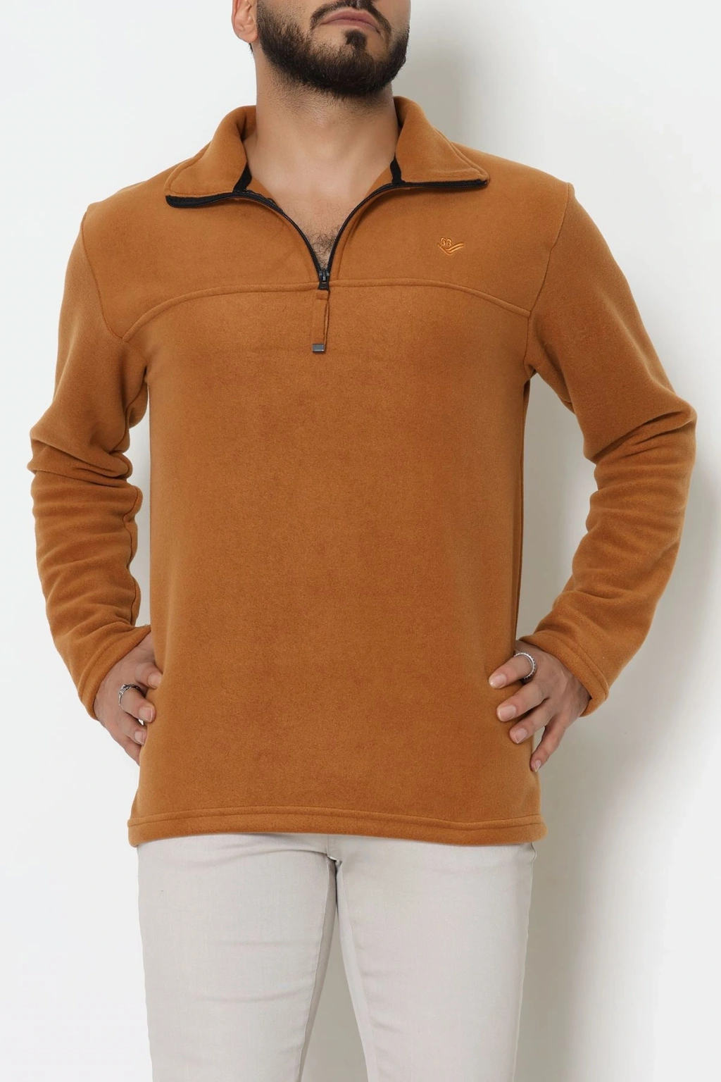 Yakası Fermuarlı Polar Erkek Sweat Tütün - 51269.1937.