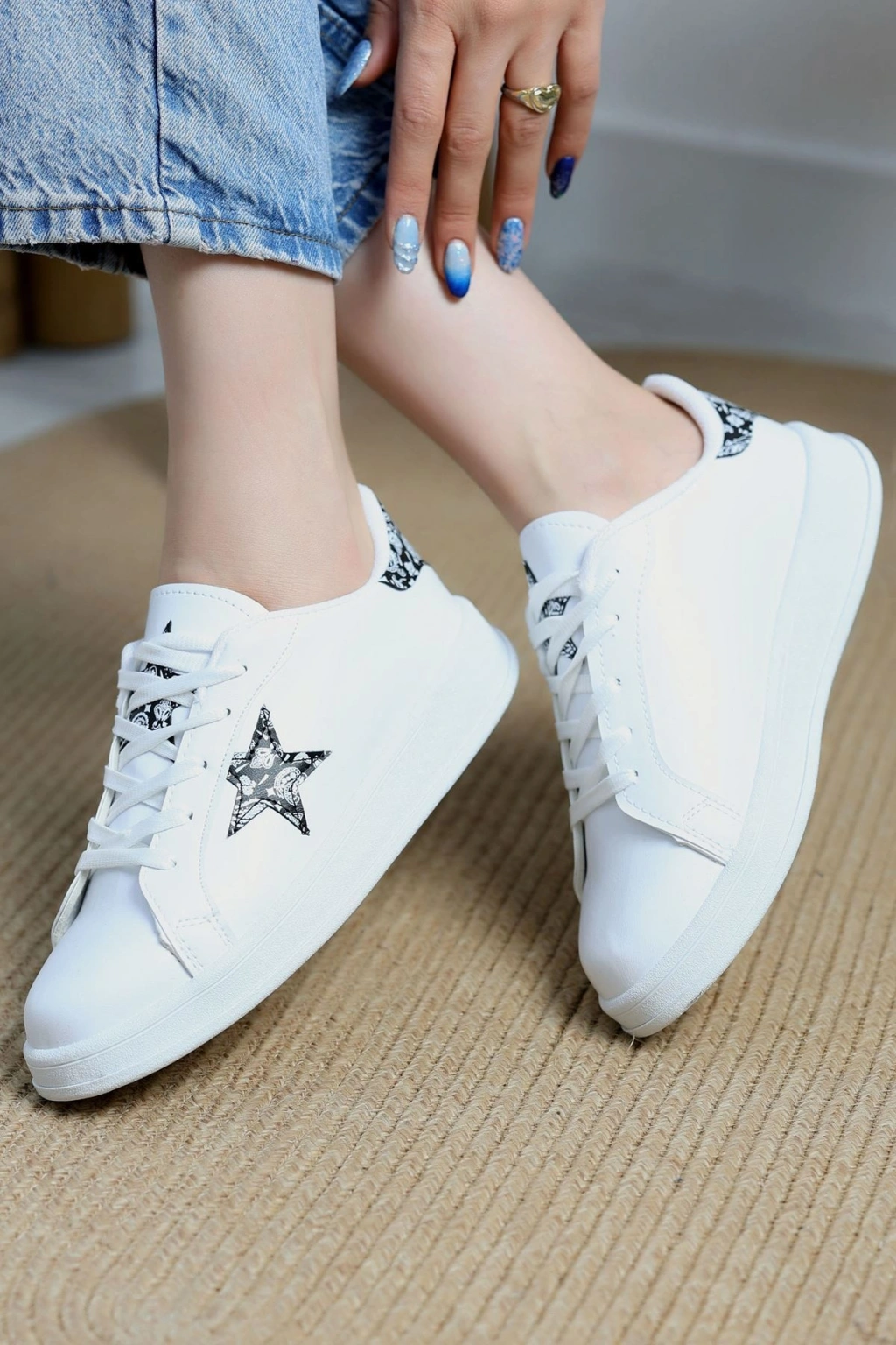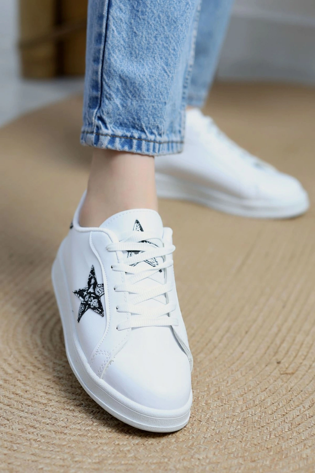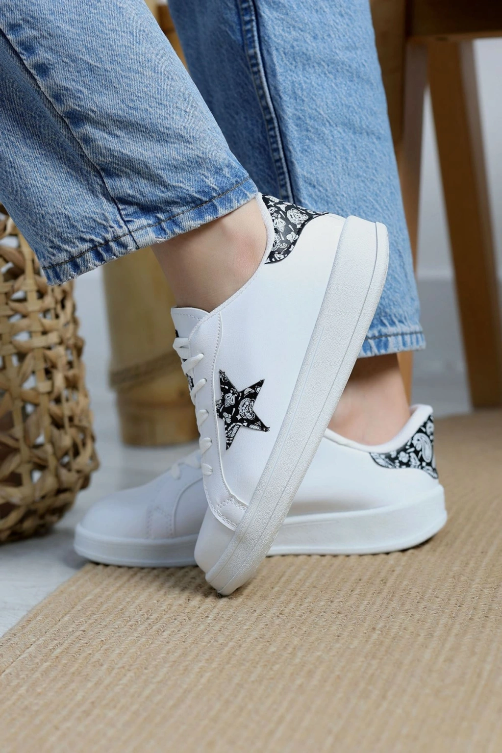 # Yıldızlı Spor Ayakkabı ## Özellikler ve Avantajlar Modern ve rahat tasarımıyla dikkat çeken bu **yıldızlı spor ayakkabı**, günlük kullanımınızda konfor ve şıklığı bir araya getiriyor. Adımlarınıza enerji katacak bu model, ayağınıza tam oturan normal kalıbı sayesinde uzun süreli kullanımlarda bile rahatlık sunar. Özellikle **kadın spor ayakkabı** tercih eden ve stilinden ödün vermek istemeyenler için bu parça ideal bir seçimdir. Ayakkabının yanındaki kontrast beyaz yıldız detayı, klasik siyah renge modern bir dokunuş katarken, kalın beyaz taban yürüyüşlerinizde ekstra destek ve denge sağlar. Sentetik deri yüzeyi kolay temizlenebilir yapısıyla pratiklik sunar ve bu **günlük ayakkabı** modeli, aktif yaşam tarzınıza uyum sağlamak üzere tasarlandı. Şık ve ekonomik bir yıldızlı spor ayakkabı arayanlar için fiyat-performans ürünüdür. Hemen sepete ekleyin.