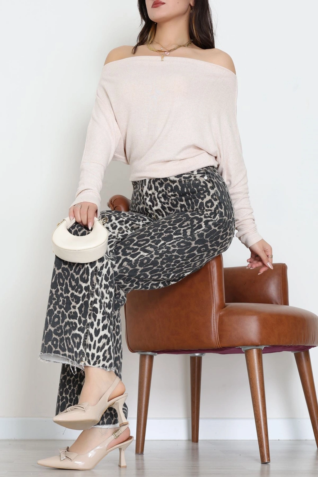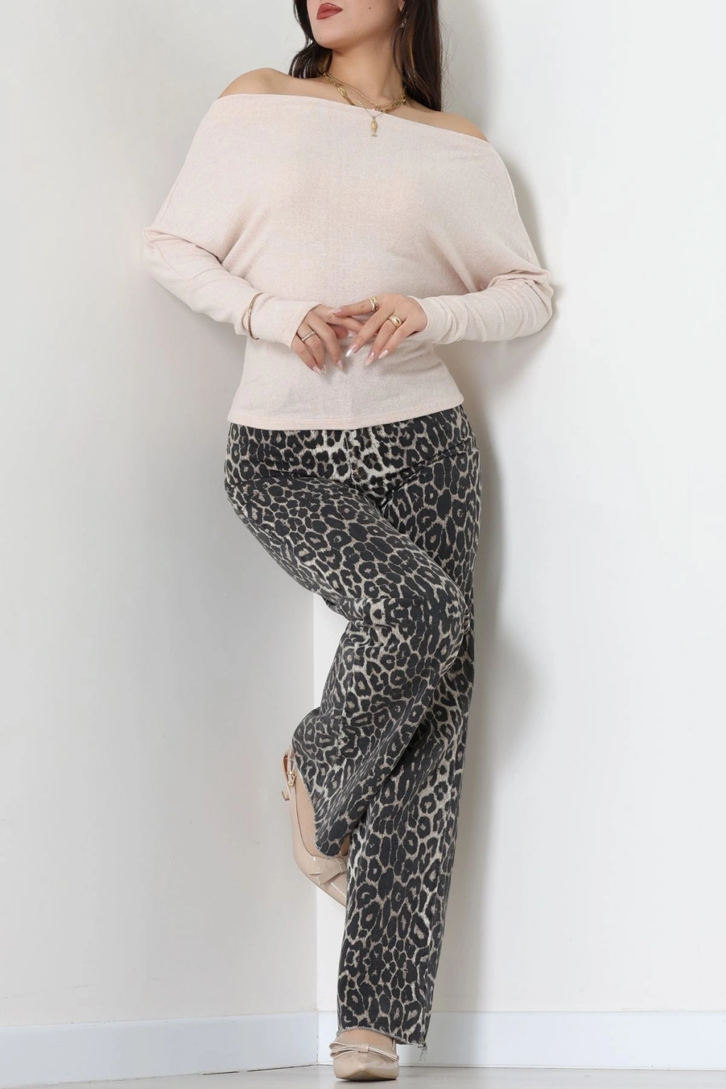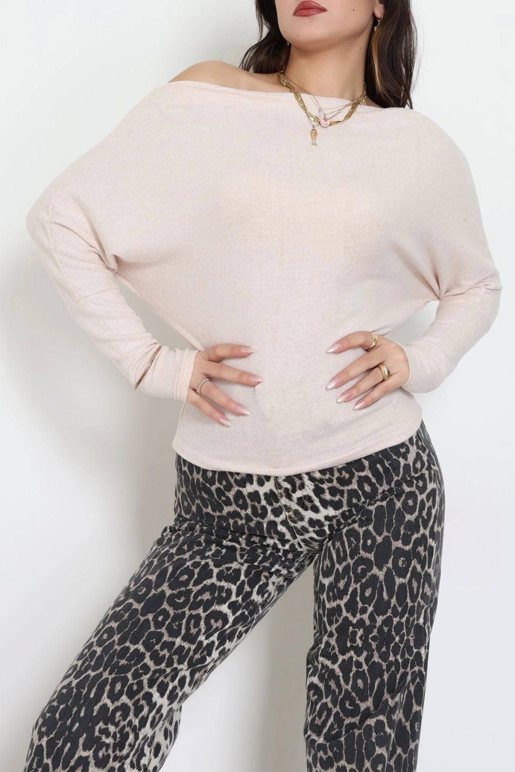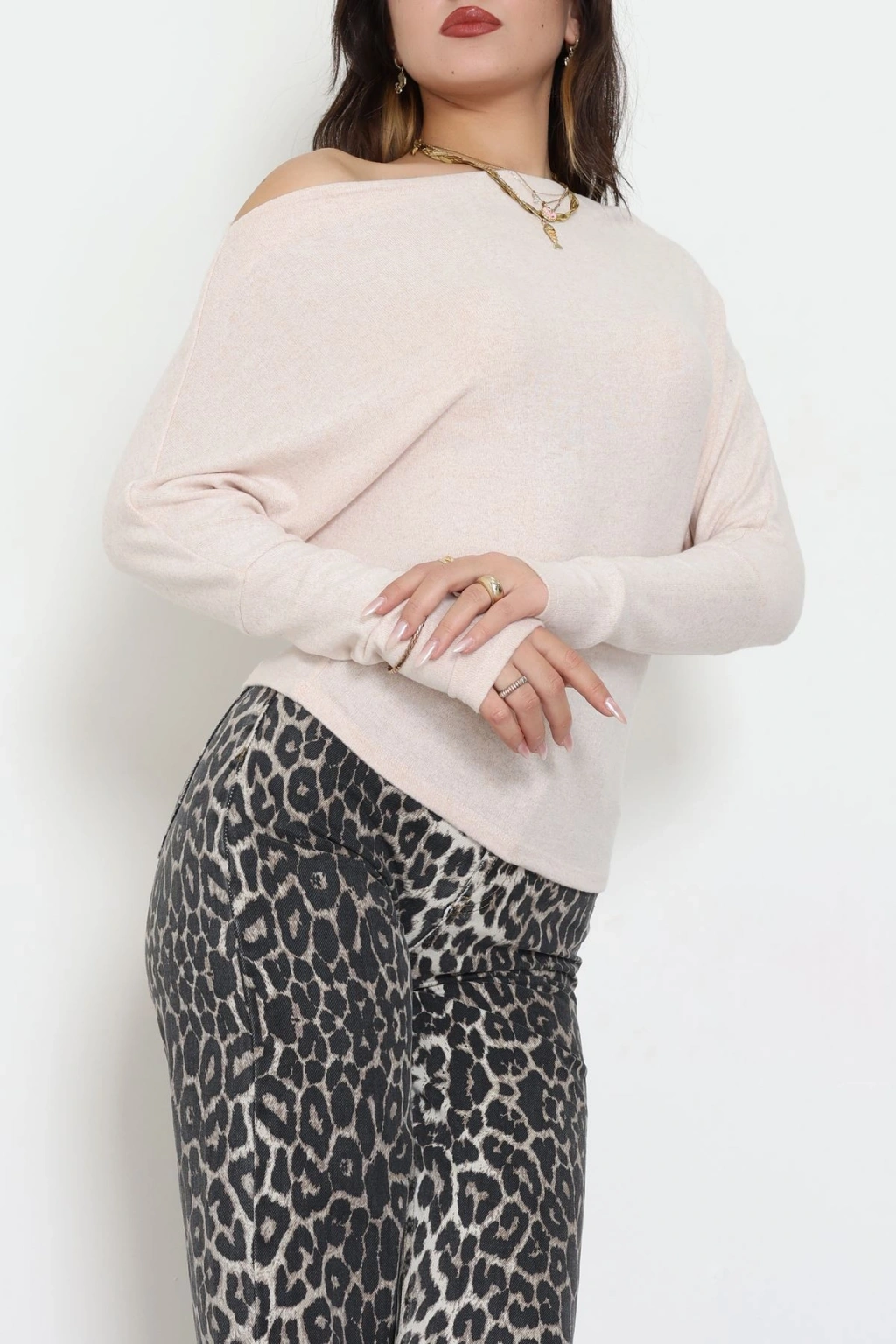 Yumoş Kumaş Kayık Yaka Omuz Düşümlü Bluz Bej - 31706.2114.