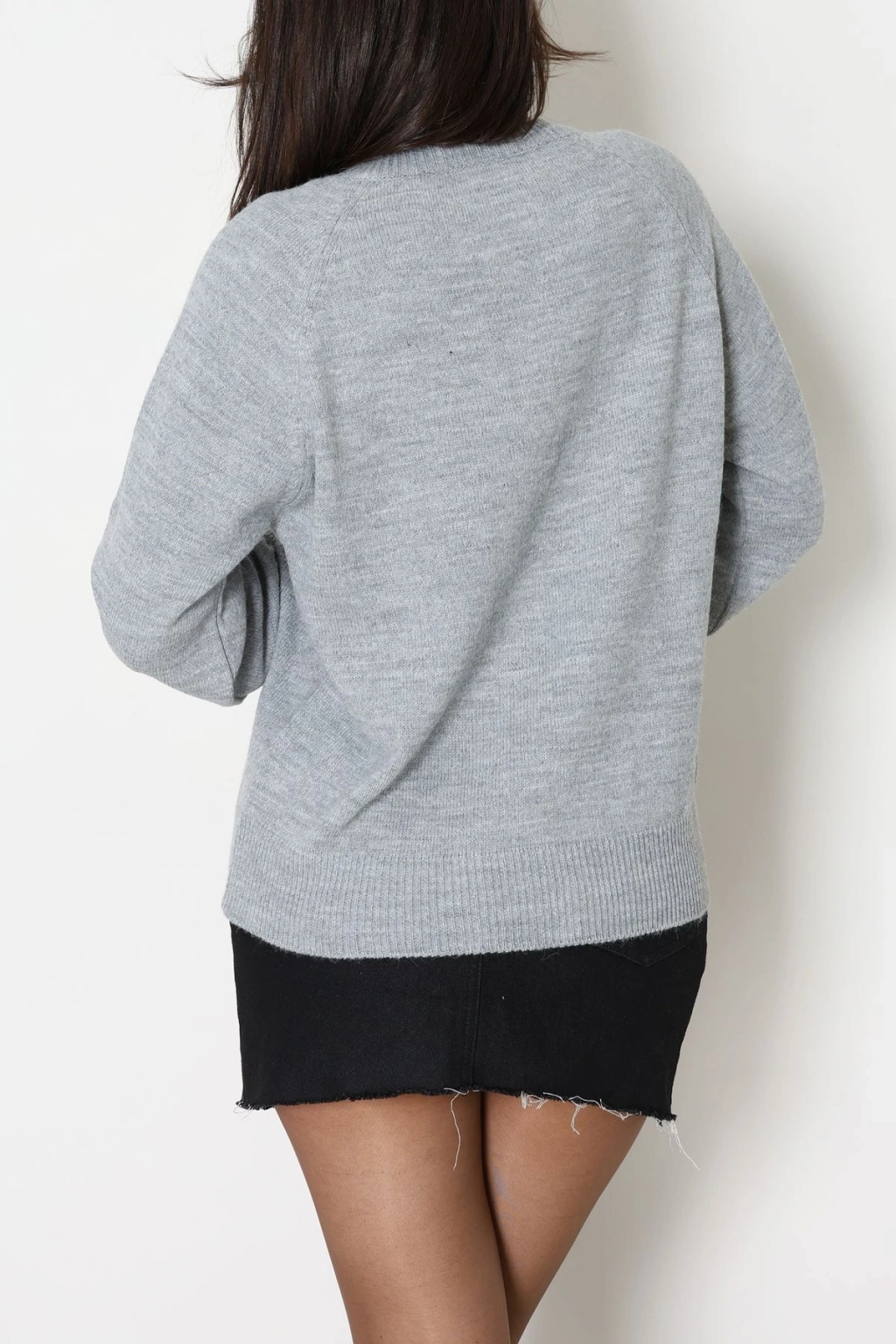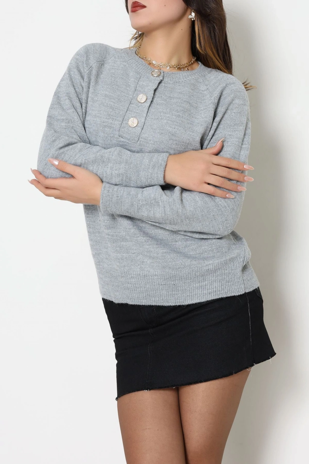 Yumuşak Dokulu Düğme Detay Triko Kazak Gri - 70881.1765.