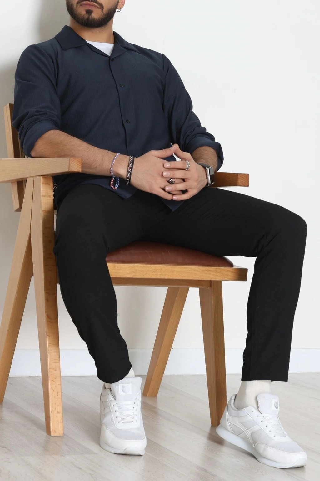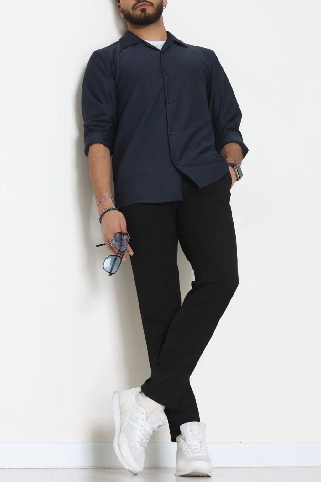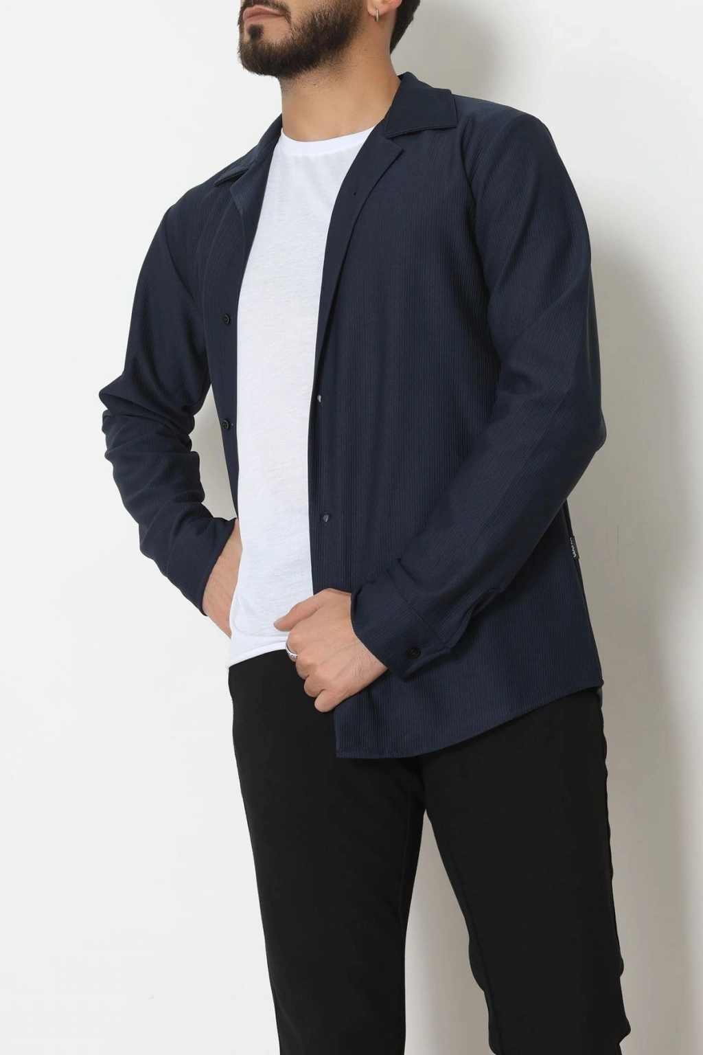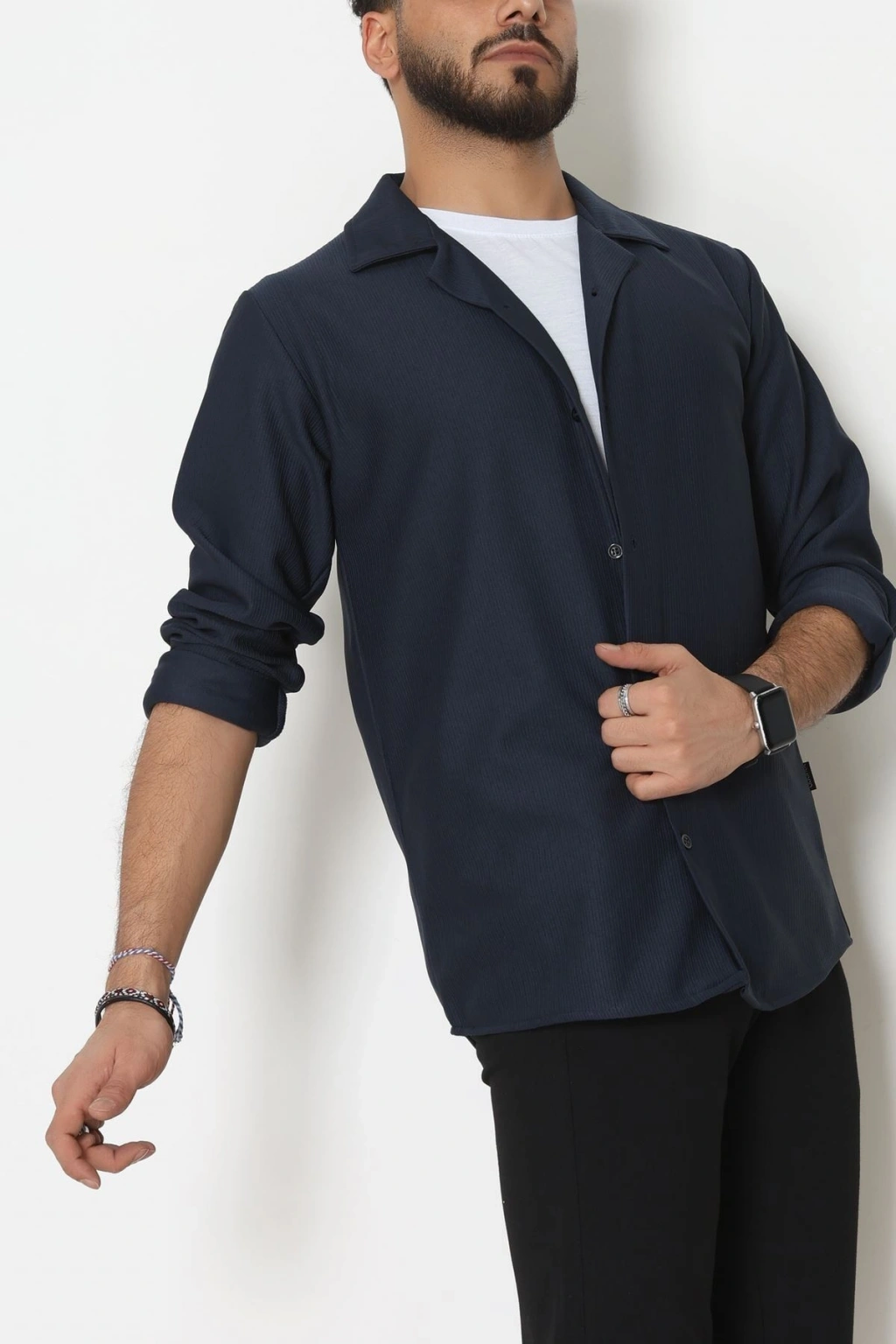 Zra Krep Fitilli Erkek Gömlek Lacivert - 31804.1937.