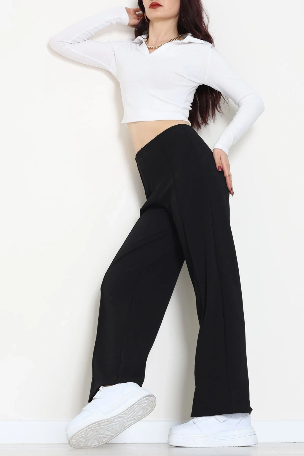 Zra Krep Lastikli Çımalı Pantolon Siyah - 51251.1837.
