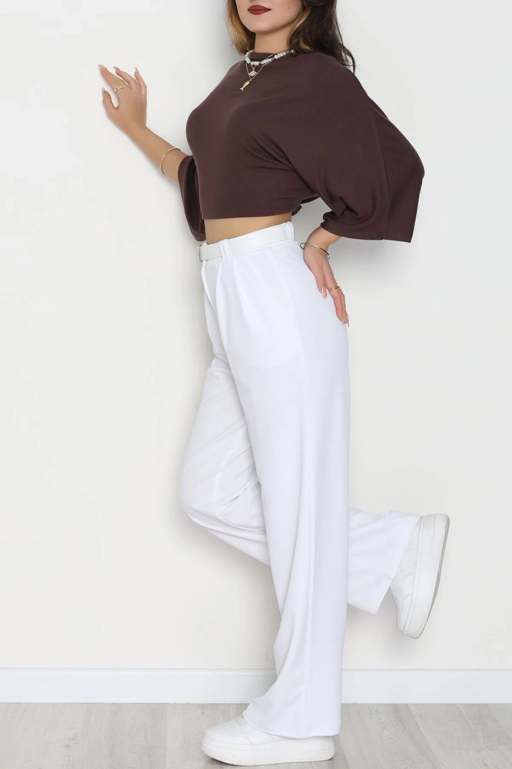 Dabıl Kumaş Kemerli Çift Düğme Pileli Palazzo Pantolon Kahve - 2084.1991.